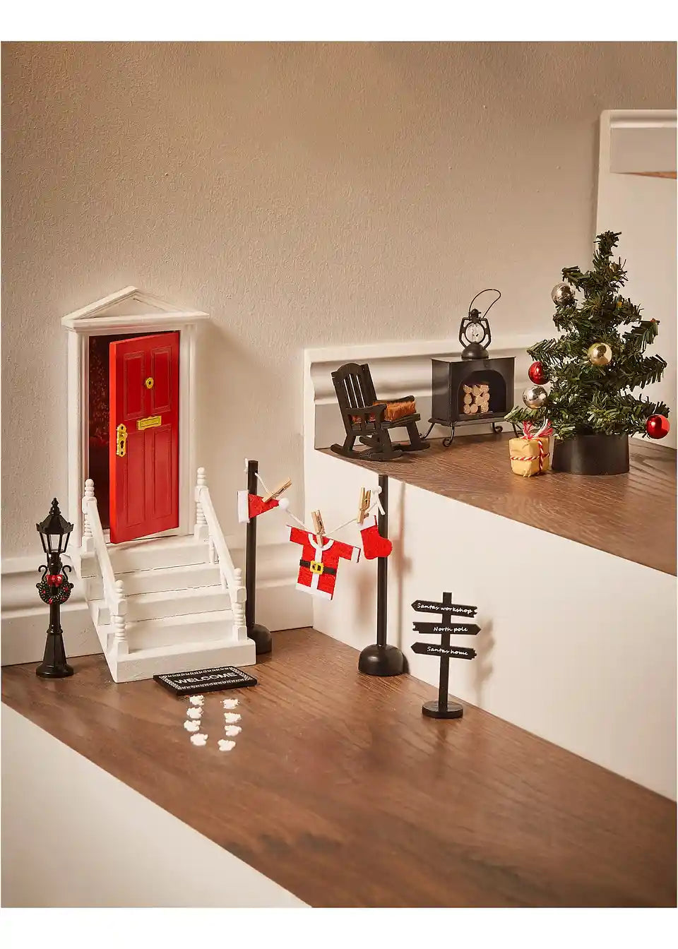 Der Wichtel richtet sich zu Weihnachten ein. Niedliches Set zum Aufbauen an der Wand. Bestehend aus 20 liebevoll gestalteten Teilen für eine außergewöhnliche Dekoration. Maße der Tür B/T/H ca. 9x1x18cm.