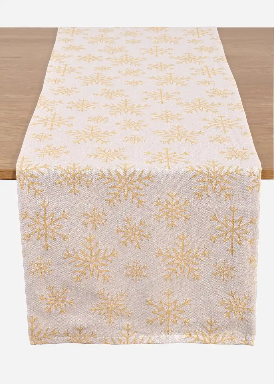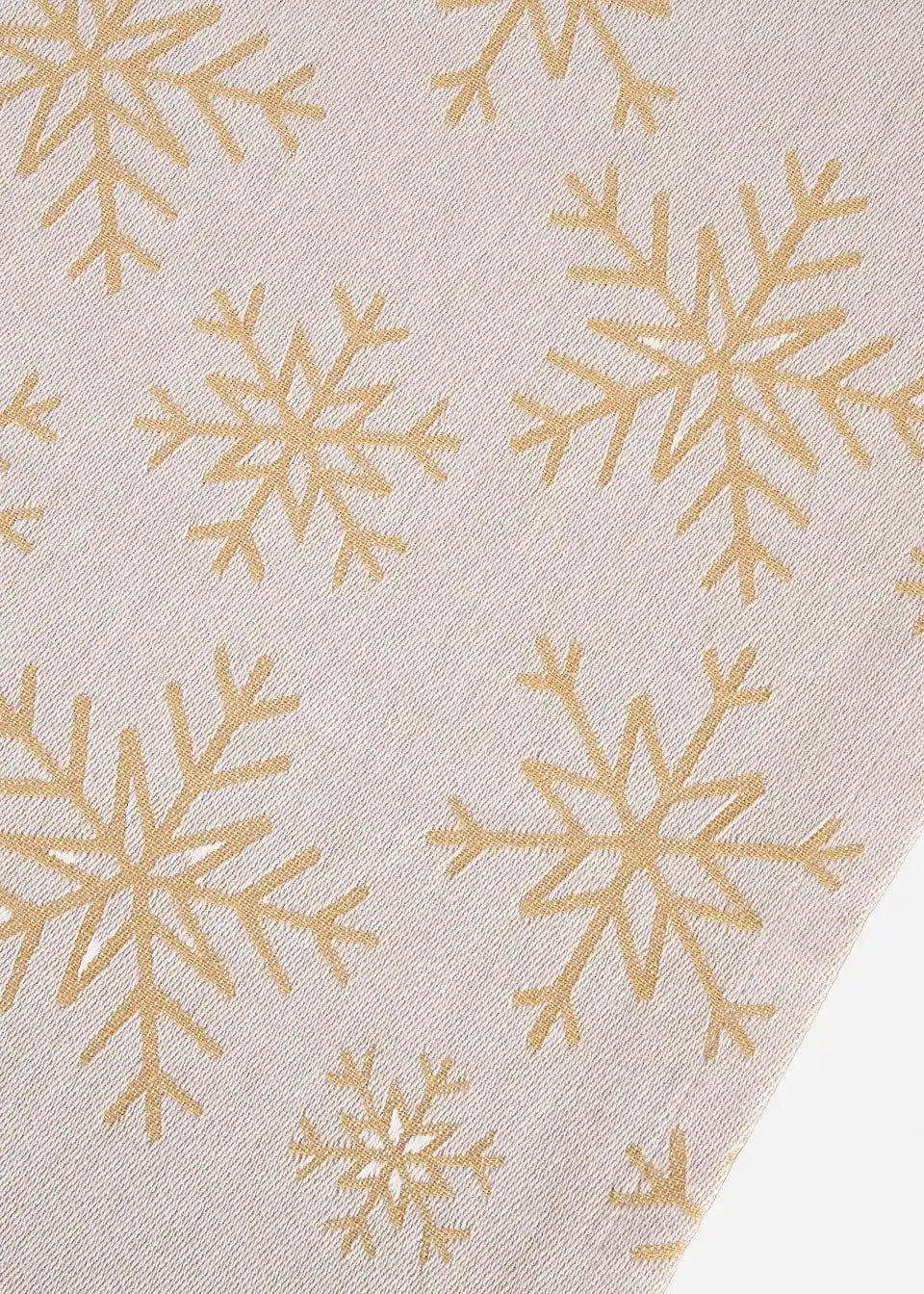 Bringe festliche Eleganz auf deinen Tisch mit unserem cremefarbenen Jacquard Tischläufer aus hochwertiger Bio-Baumwolle, der mit zauberhaften winterlichen Schneeflocken verziert ist. Dieser Tischläufer vereint stilvolles Design mit umweltfreundlichen Materialien und ist die perfekte Wahl für deine winterlichen Feierlichkeiten.
