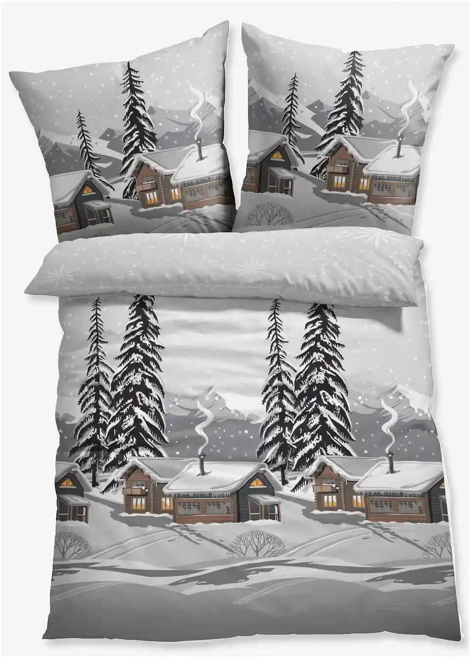 Bettwäsche mit Berghütte in Schneelandschaft
