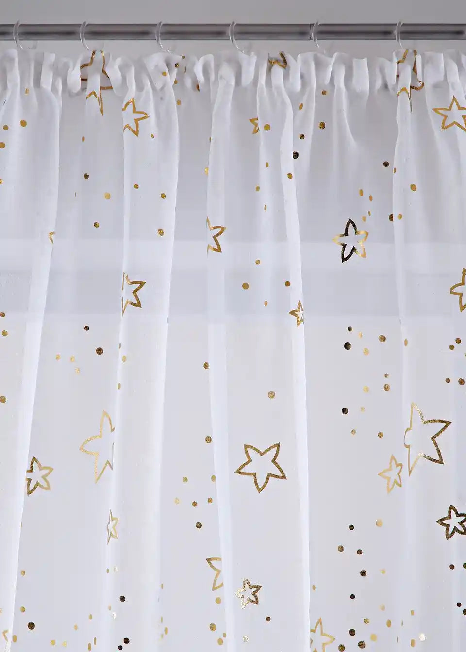 Diese Fertiggardine zaubert Dir glänzende Sterne an Deine Fenster. Nicht nur dekorativ zur Winterzeit sondern auch sonst sehr schmückend.