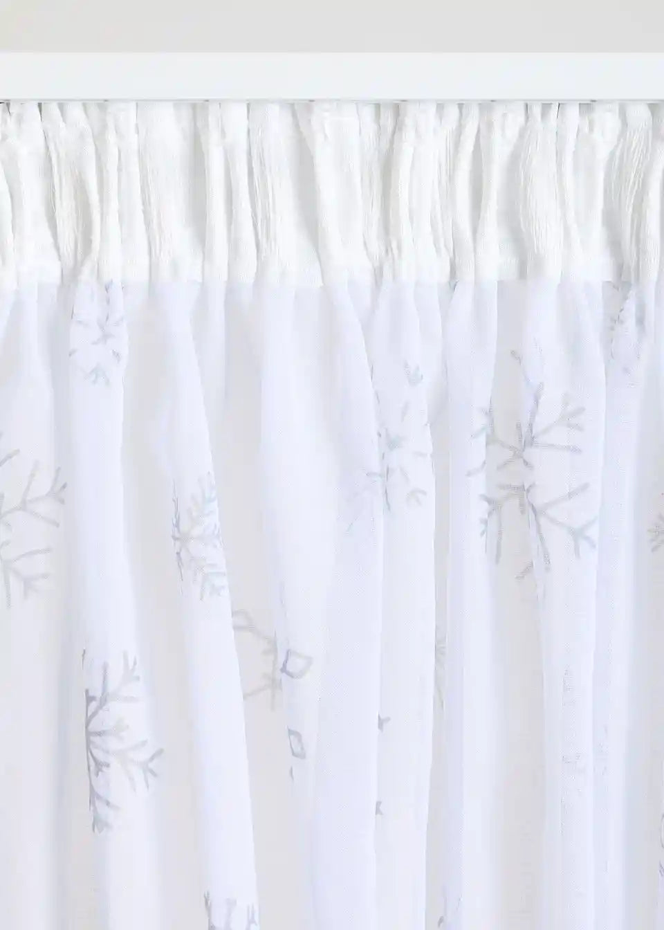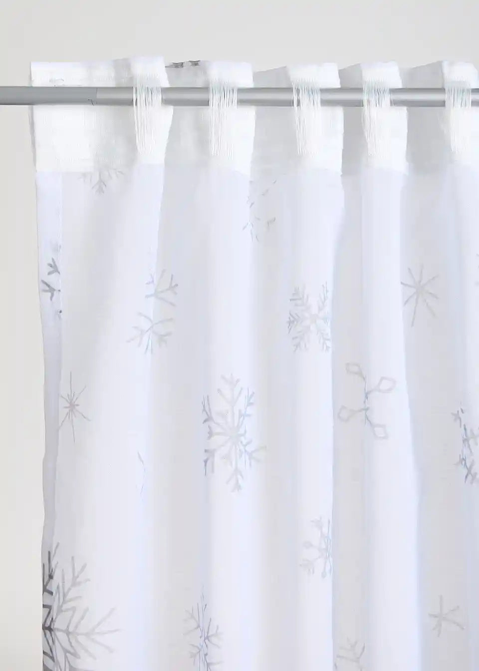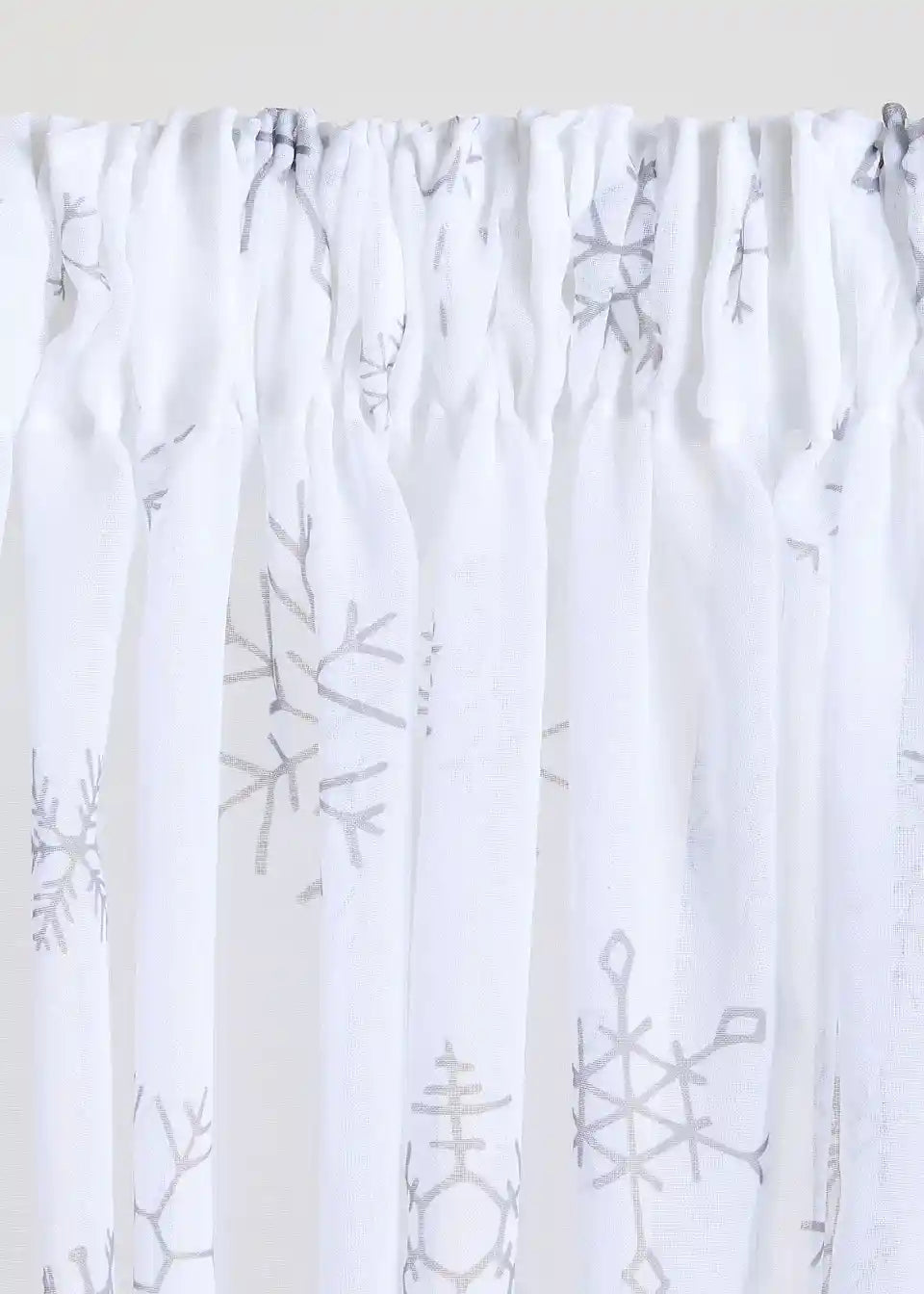 Hübsche Weihnachtsgardine mit bedruckten Schneeflocken, die von oben nach unten verlaufen. Das transparente Strukturgewebe bietet einen leichten Sichtschutz und lässt viel Tageslicht rein.