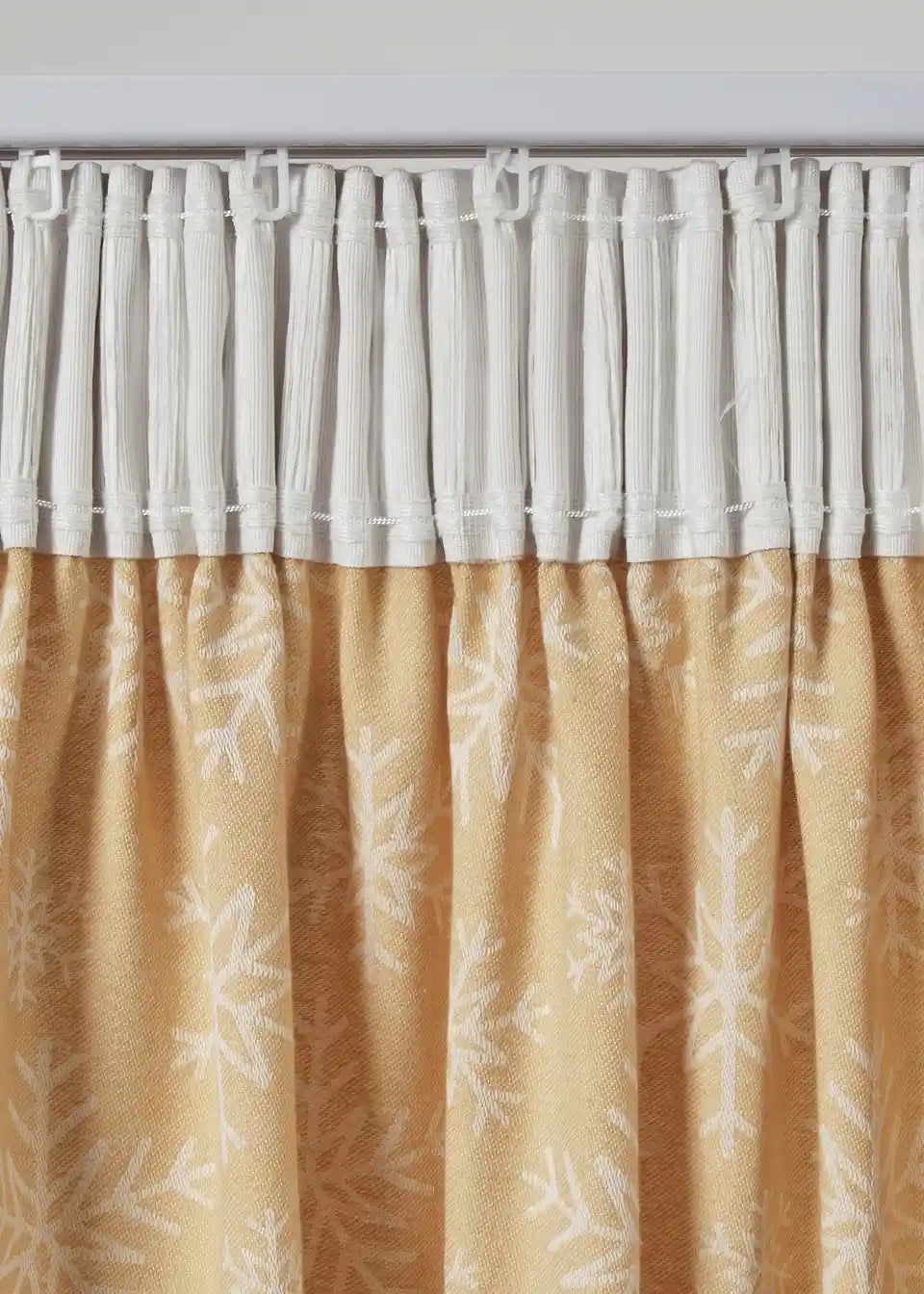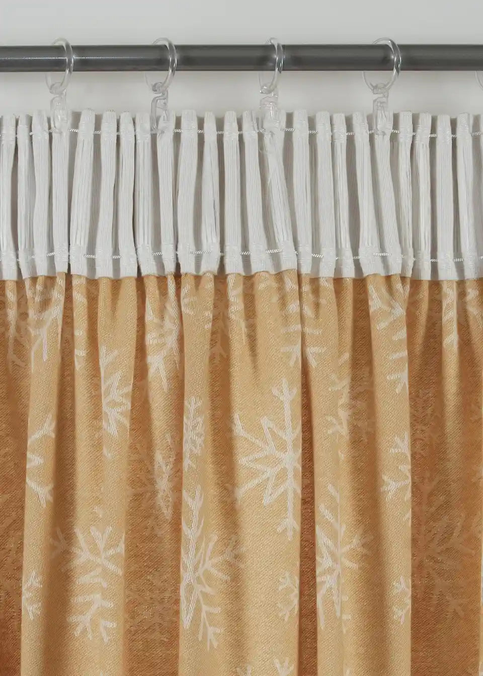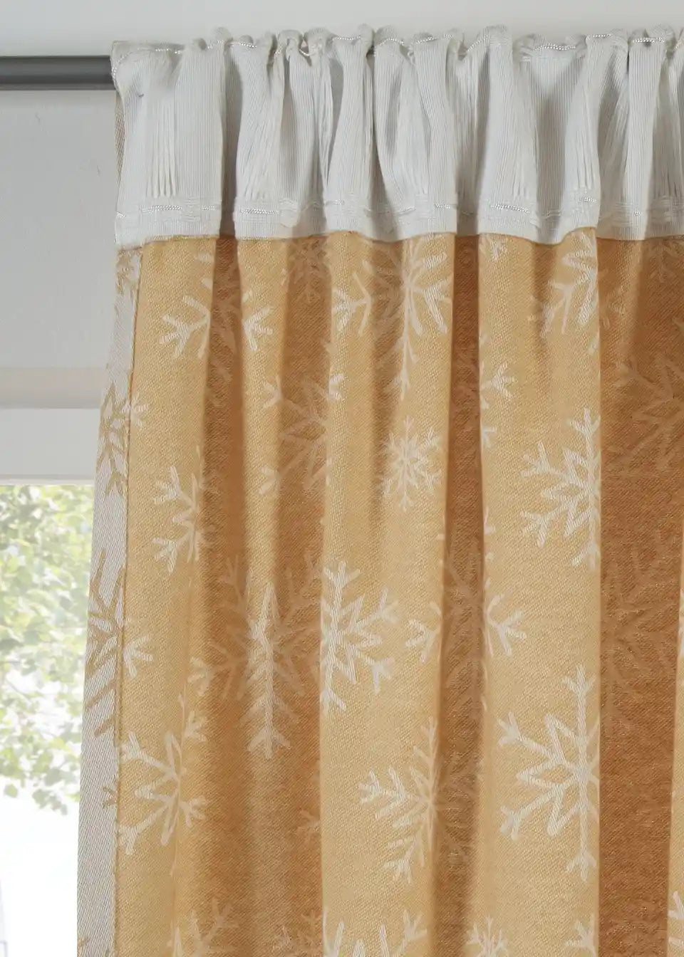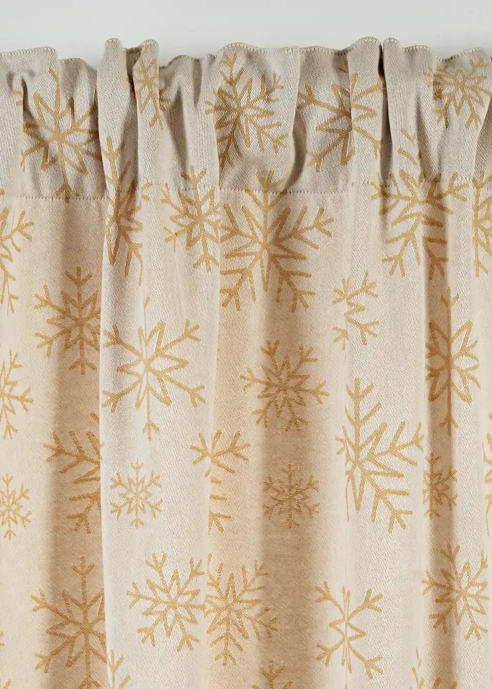 Verwandle dein Zuhause in eine winterliche Oase mit unserem cremefarbenen blickdichten Jacquard Vorhang aus hochwertiger Bio-Baumwolle, der mit zauberhaften winterlichen Schneeflocken verziert ist. Dieser Vorhang kombiniert stilvolles Design mit umweltfreundlichen Materialien und bringt eine festliche Atmosphäre in jeden Raum.