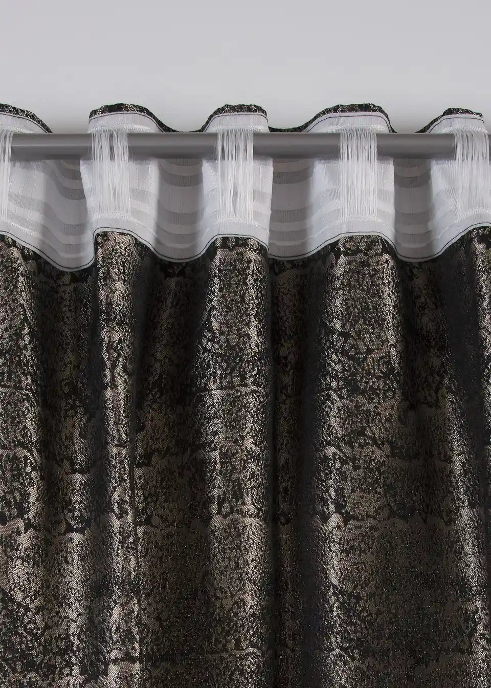 Der Vorhang aus hochwertigem Jacquard Gewebe hat eine edle Optik und schmückt Deine Fensterfront.