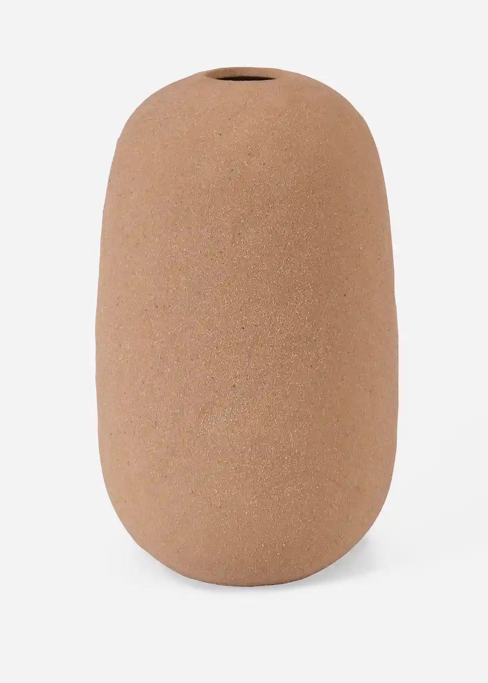 Diese schlichte Vase aus Keramik besticht durch ihre organische Form und die warme Farbgebung. Die raue Oberfläche verleiht ihr einen natürlichen und authentischen Charakter. Ob mit frischen Blumen, Trockenblumen oder einfach nur als dekoratives Objekt – diese Vase ist ein zeitloser Blickfang und bringt eine harmonische Note in jeden Raum.