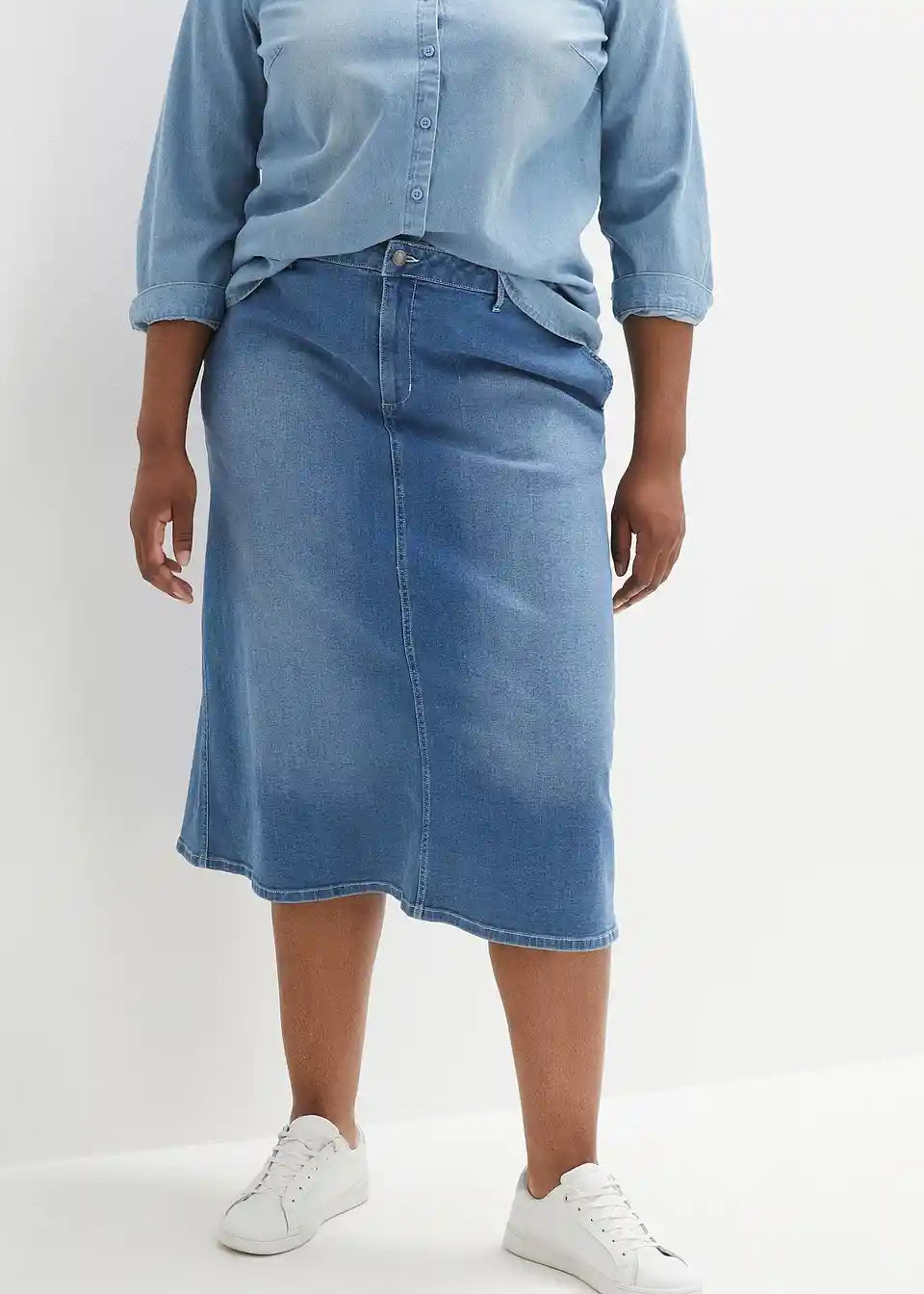 Bequemer Stretch-Jeansrock in Midi-Länge