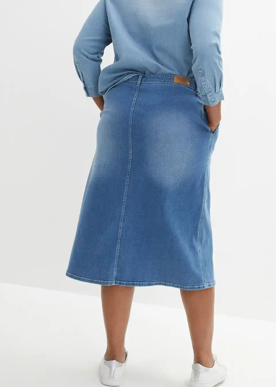 Stretch-Jeansrock, Midi-Länge