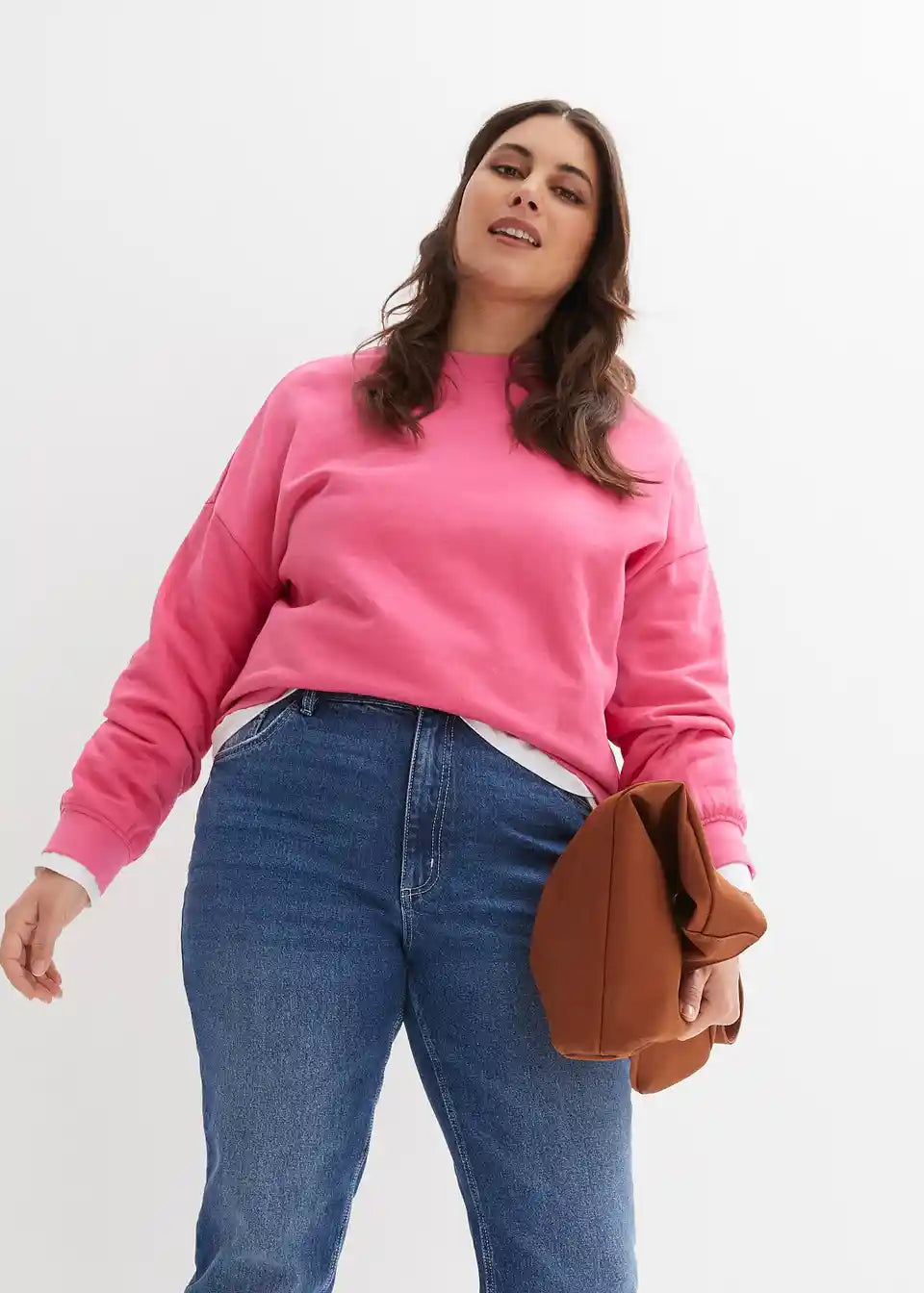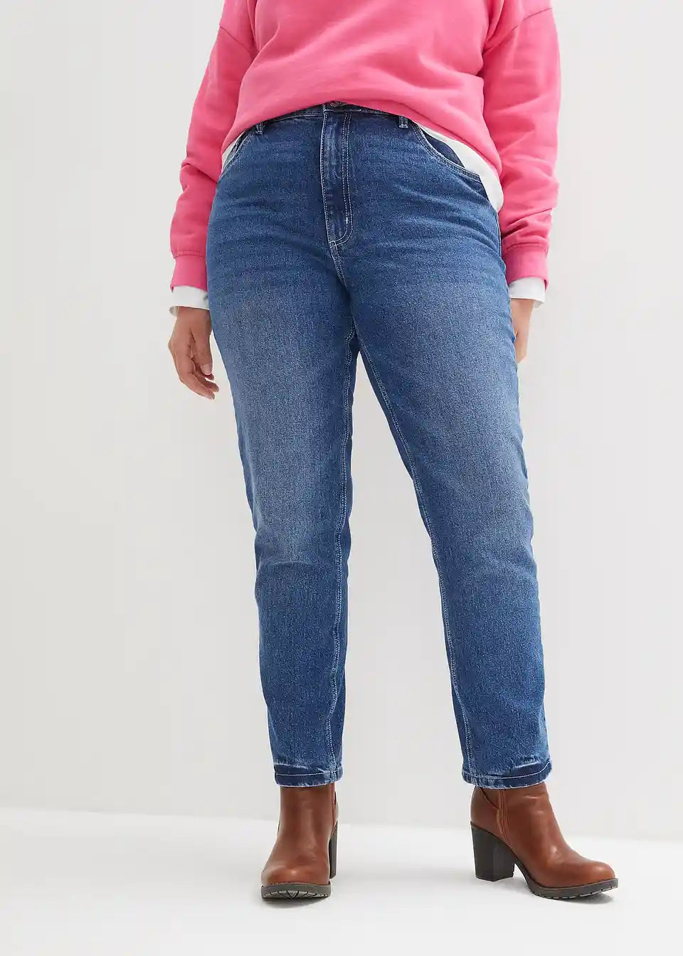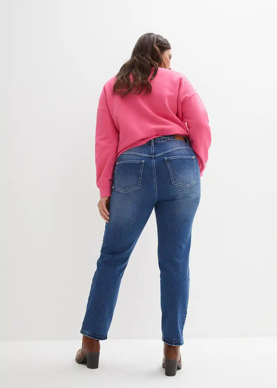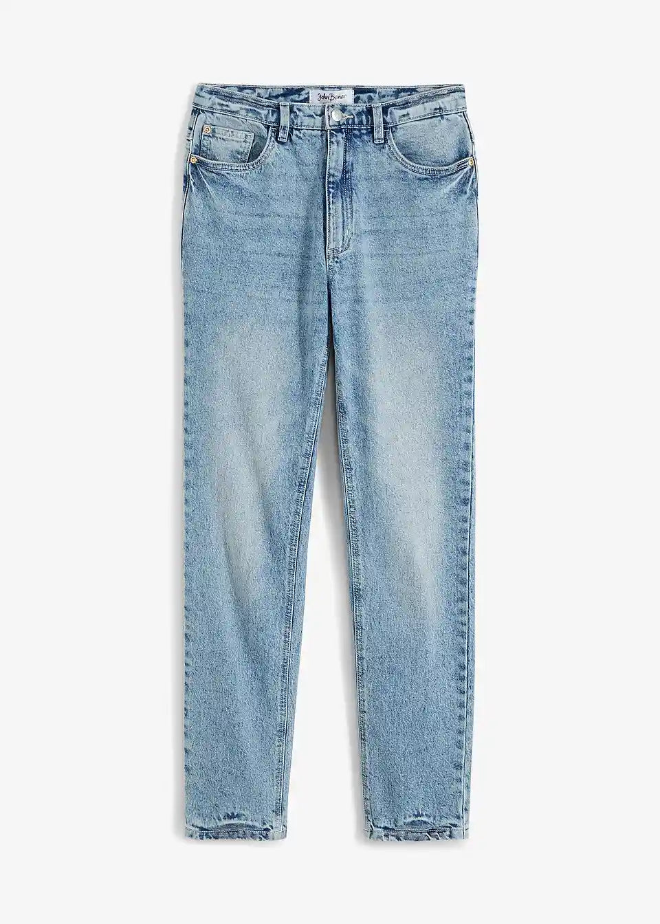 Gerade Jeans mit hohem Bund aus einem festen Baumwolldenim, der sich zunächst etwas steif anfühlt und durch häufiges Tragen weicher und lockerer wird.