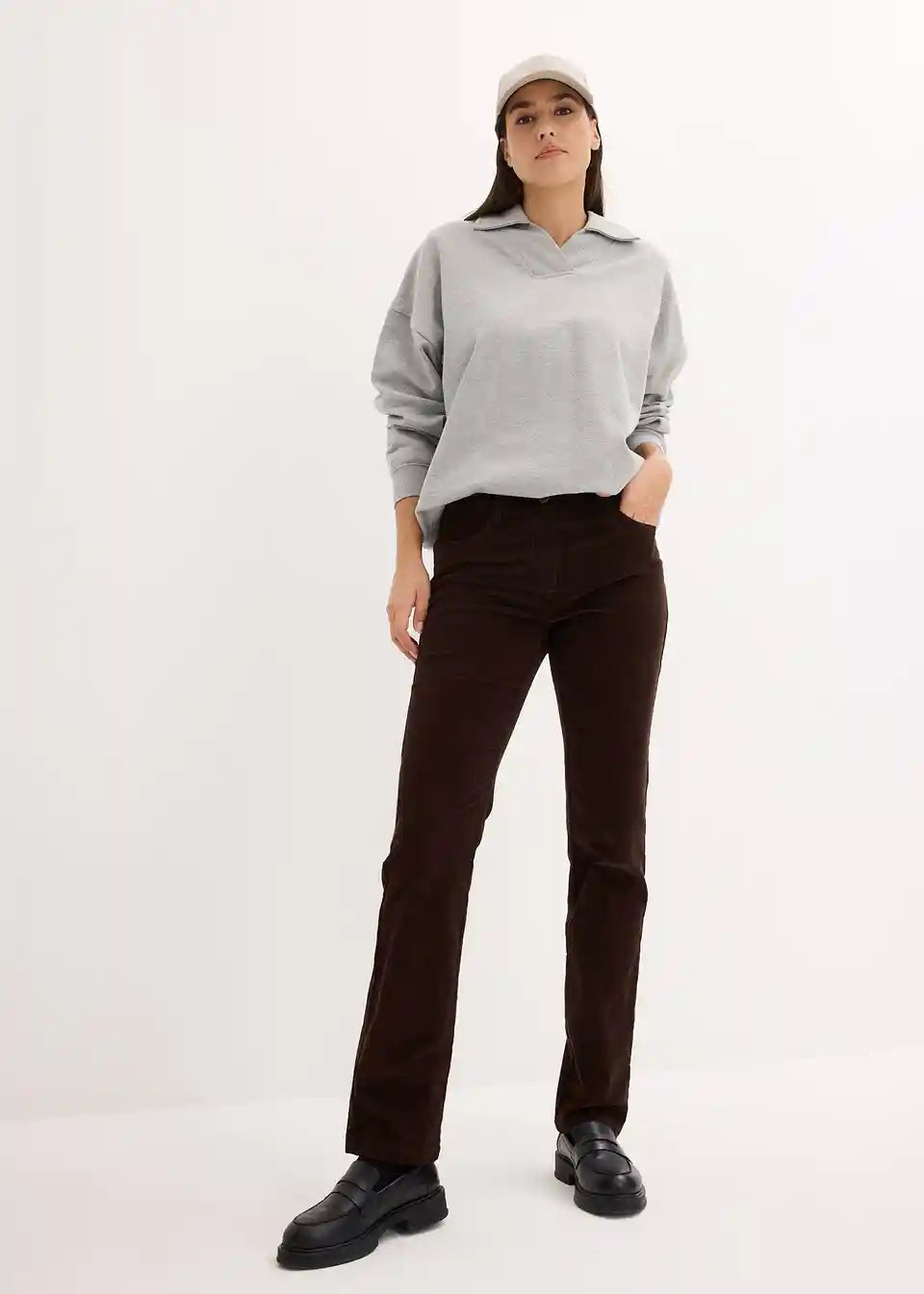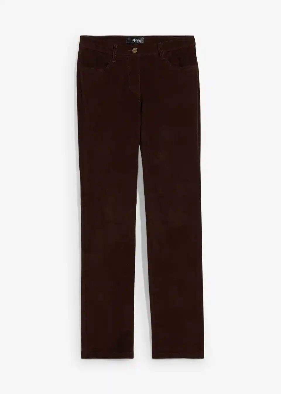 Diese modische Stretch-Cordhose von bpc ist in aktueller schmaler Beinform geschnitten. Die Hose wirkt lässig mit Pulli und Stiefeln oder schick mit Blazer und Pumps.Der klassische 4-Pocket-Style mit etwas niedrigerer Leibhöhe wird locker auf der Hüfte getragen. Die maschinenwaschbare Cord-Qualität sorgt mit Stretch-Anteil für uneingeschränkten Tragekomfort. Die figurbetonte Passform mit dem schmaler zulaufenden Bein macht gleichzeitig eine tolle Figur.