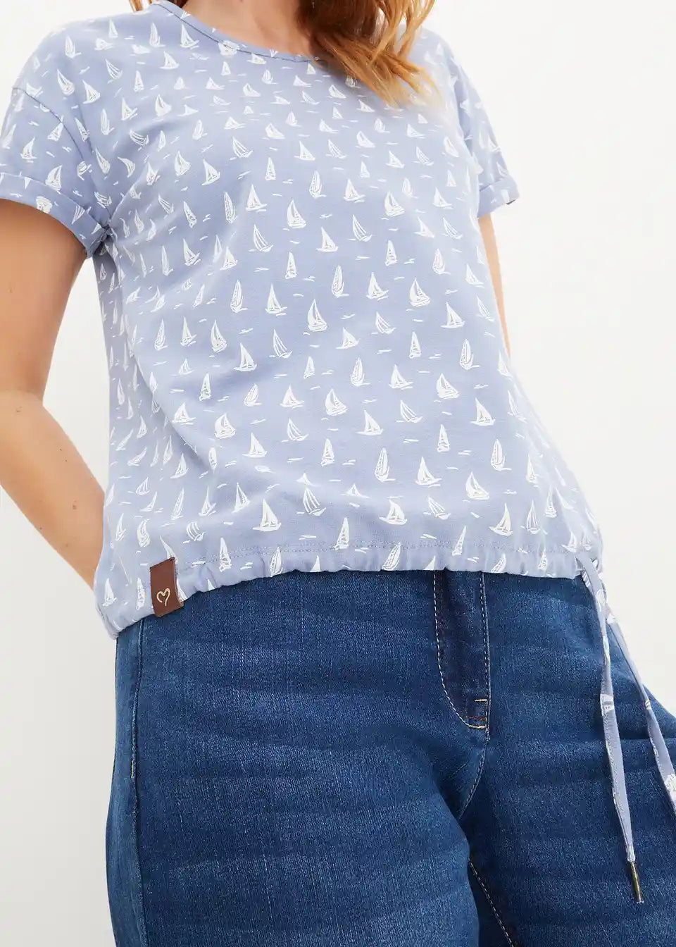 Maritimes T-Shirt mit Binde-Detail am Saum