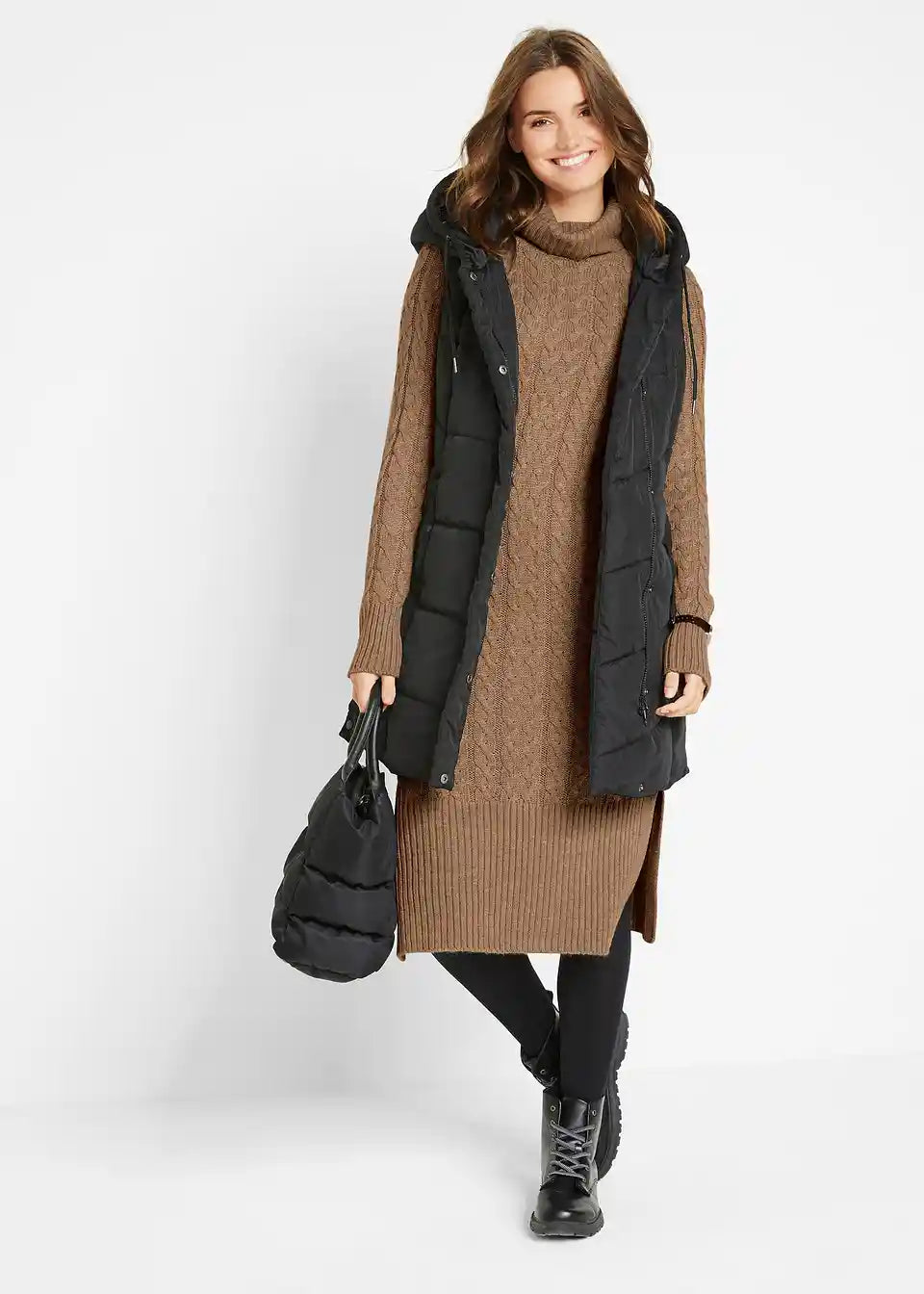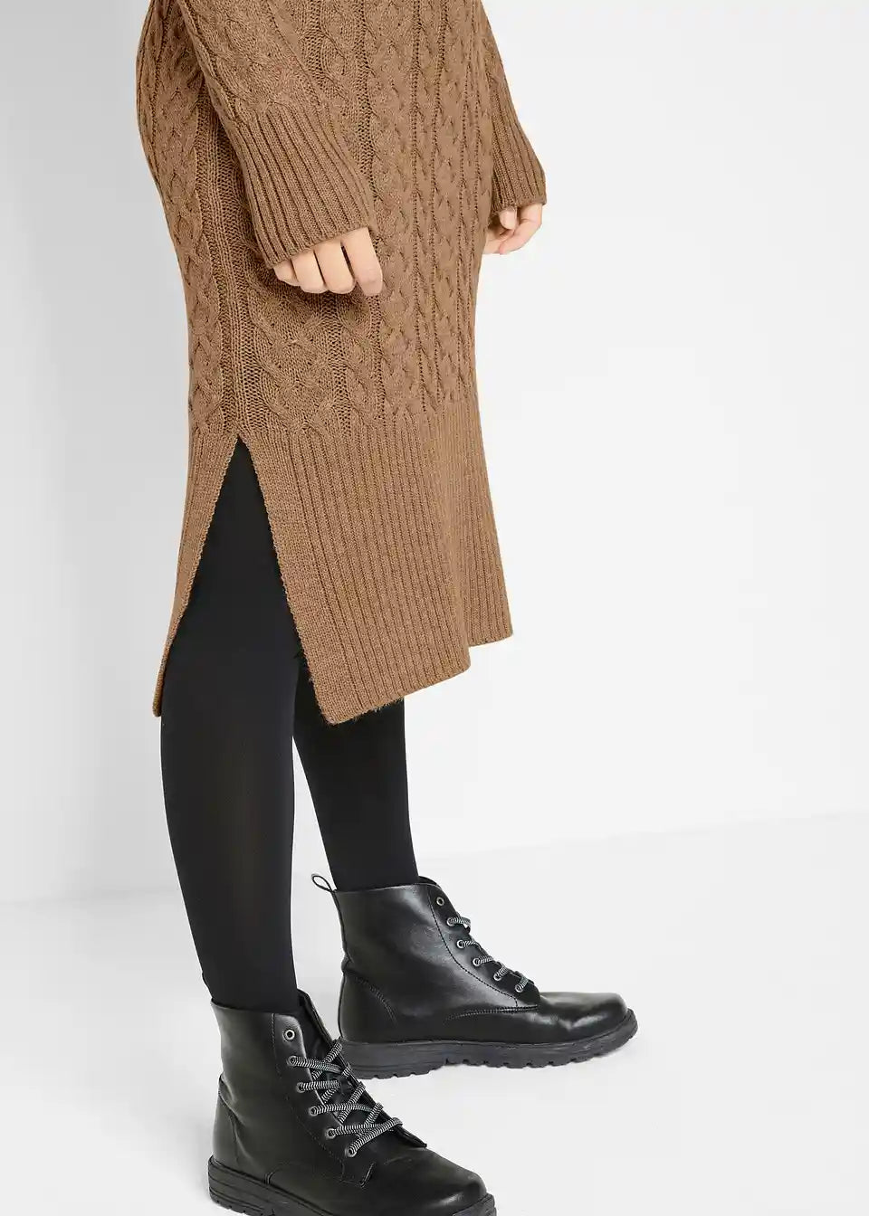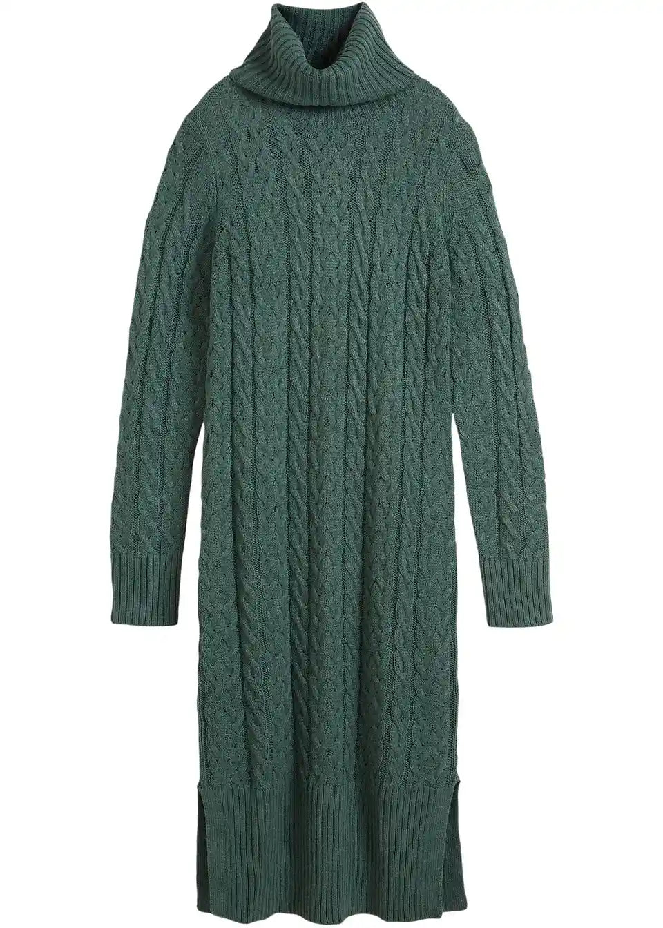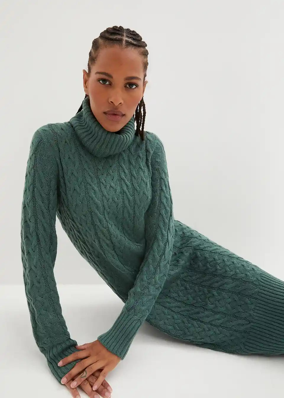 Kuscheliges Rollkragen-Kleid aus Strick mit Zopfmuster, seitlicher Schlitz am Saum