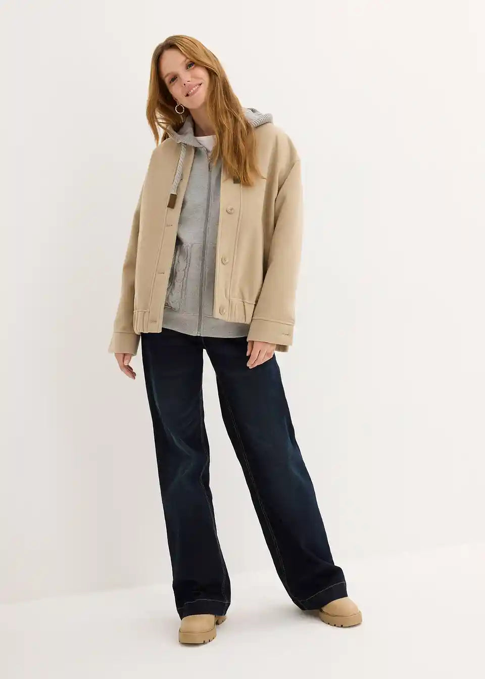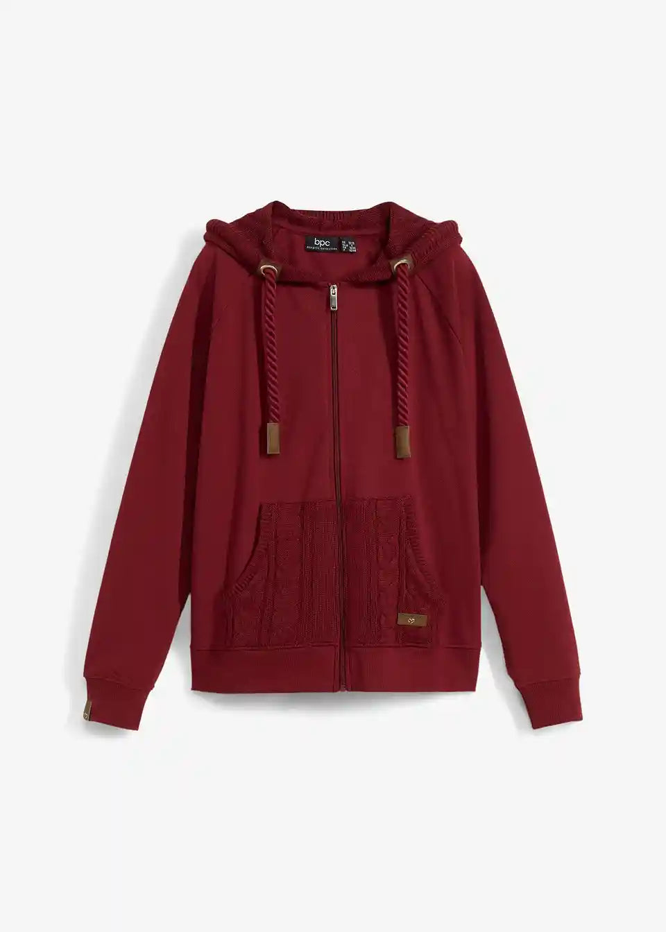 Sweatjacke mit schönen Strick- und Lederimitat-Details