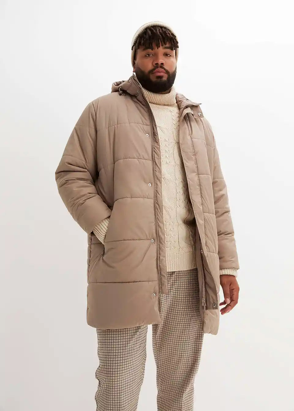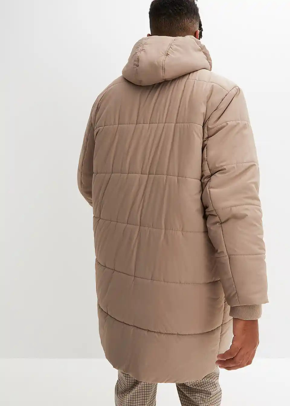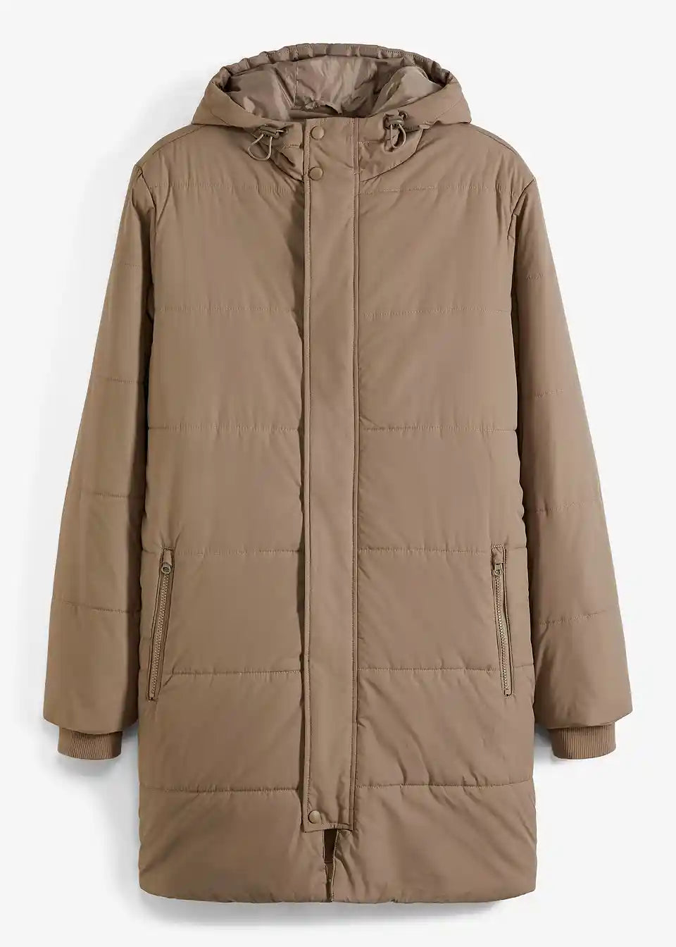 Moderner Steppmantel mit zwei seitlichen Eingrifftaschen und einer Innentasche.