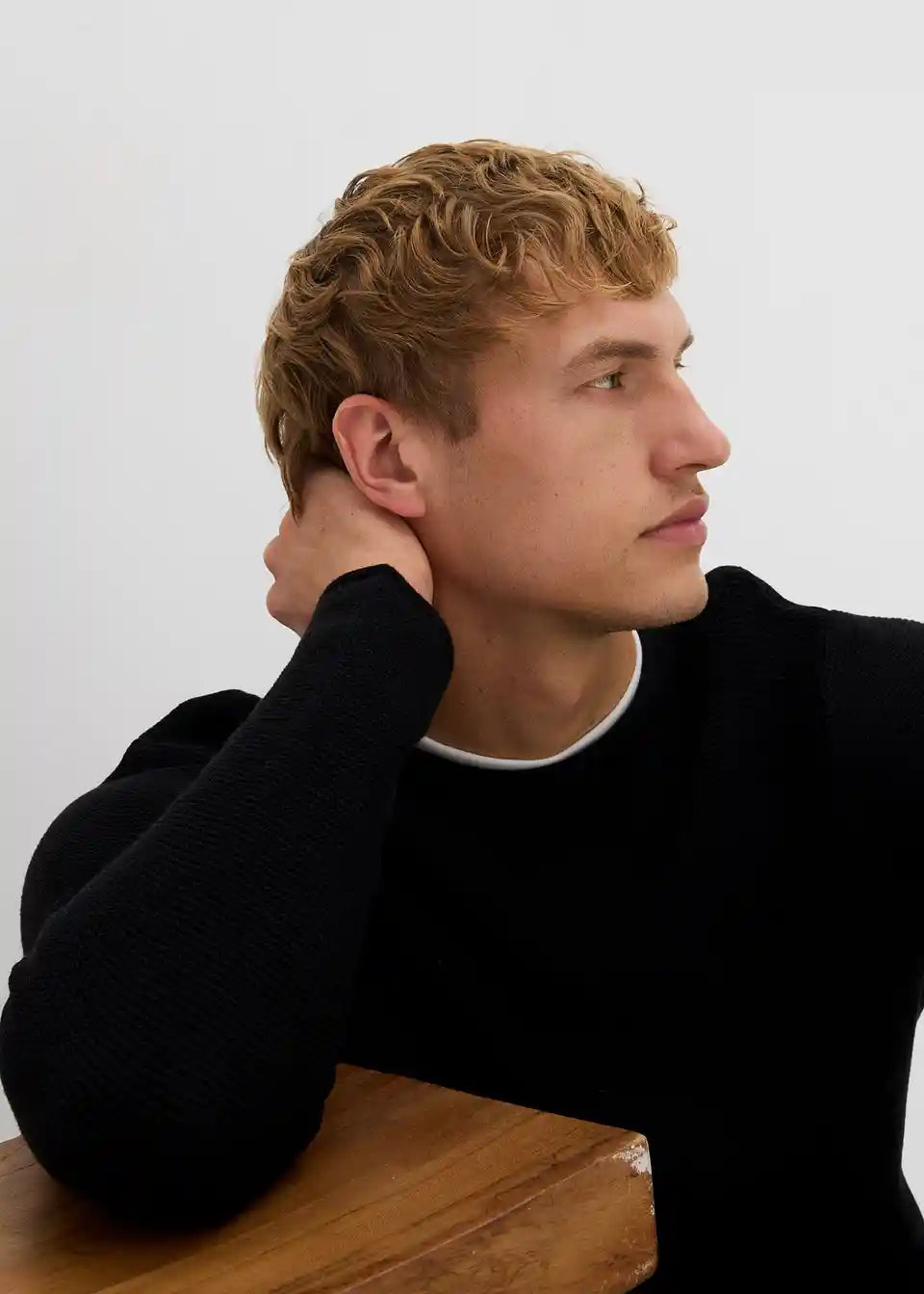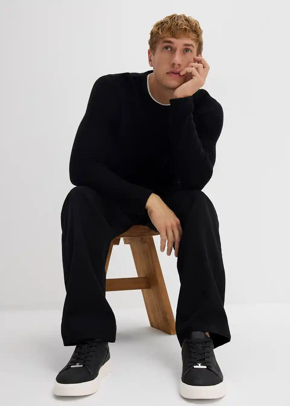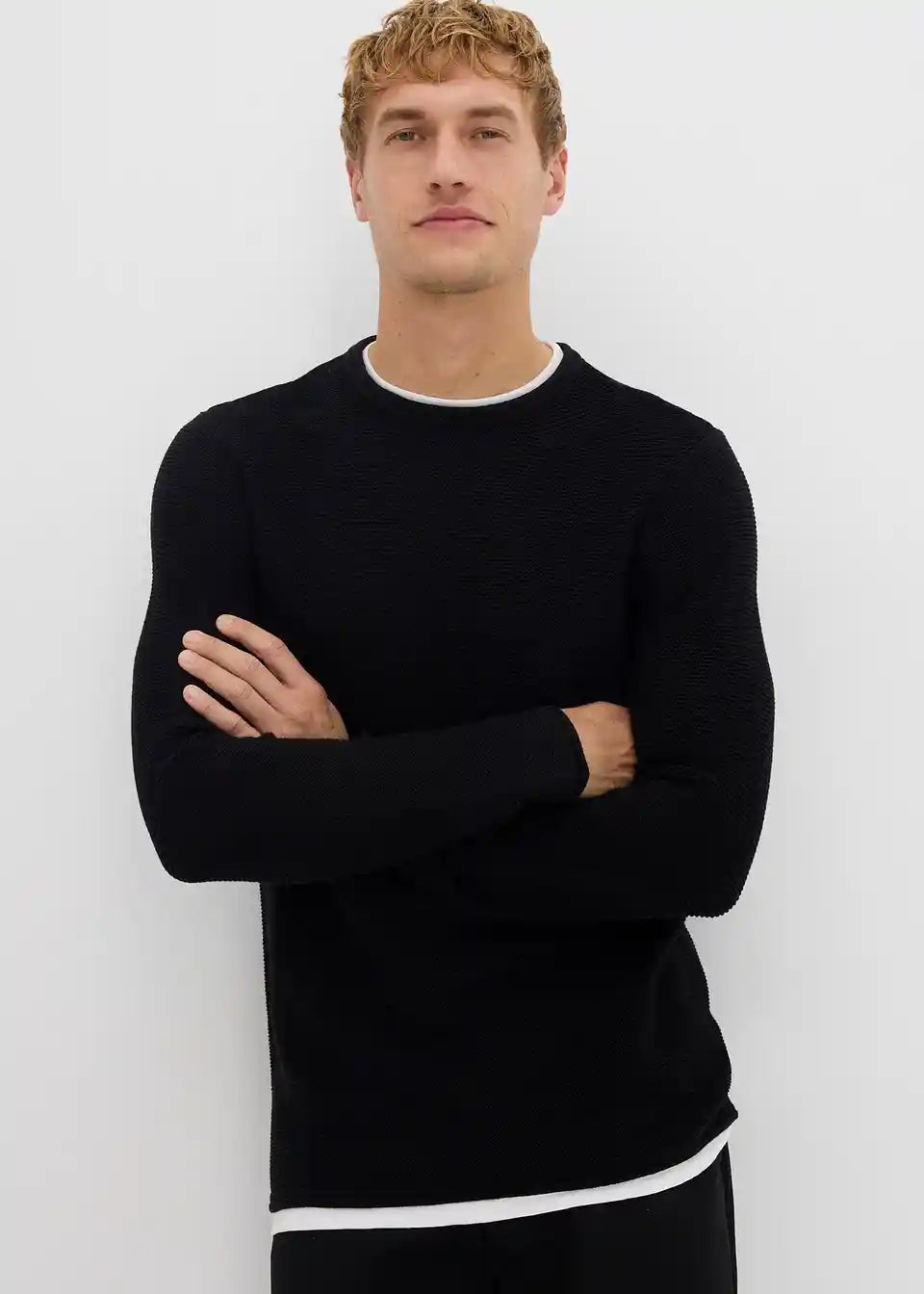 strukturierter Pullover in 2 in 1 Optik aus Baumwoll-Mix
