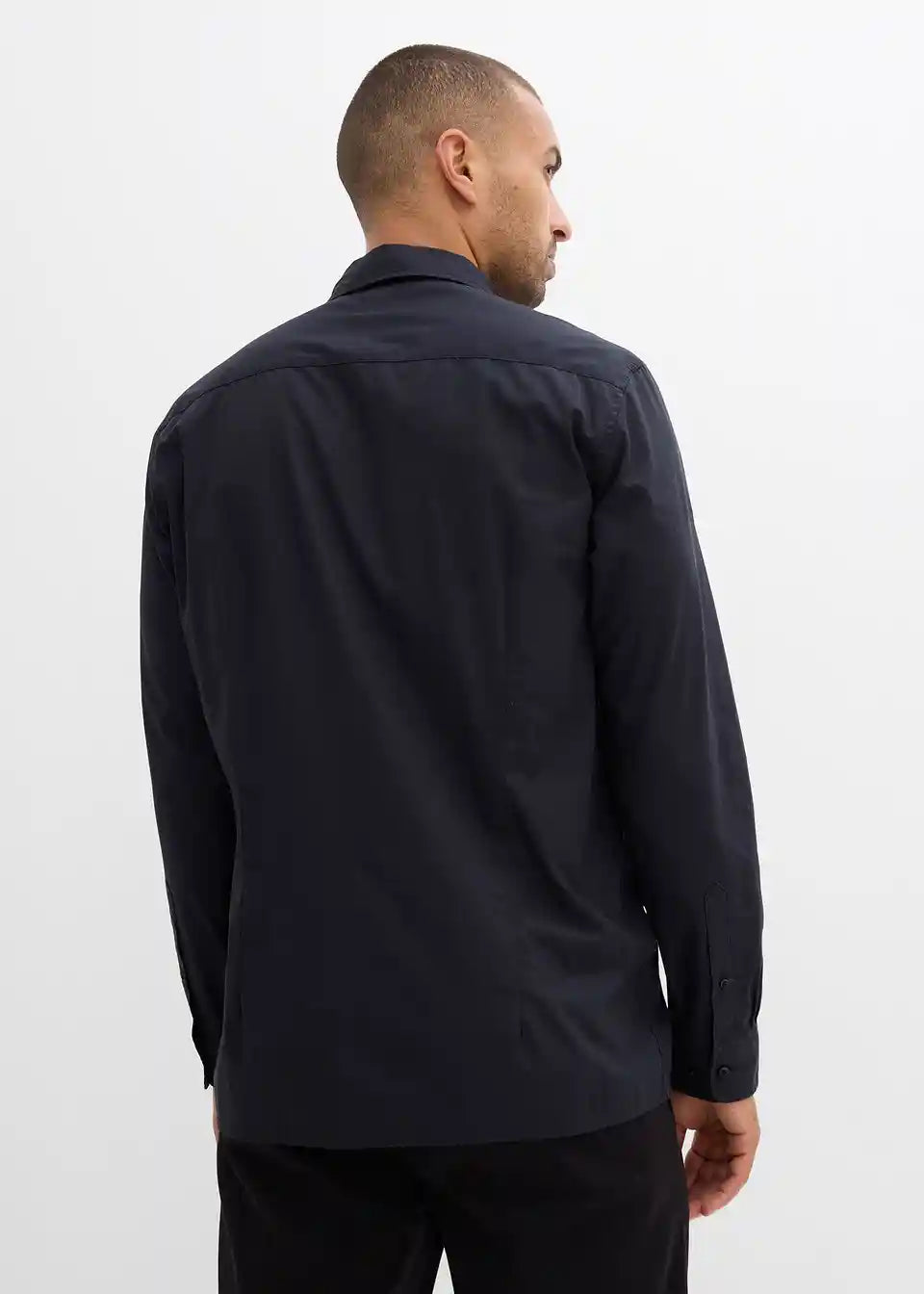Elegantes Hemd mit Abnähern/ Klassisches Regular-Fit-Hemd mit schwarzen Knöpfen und passender Satinfliege