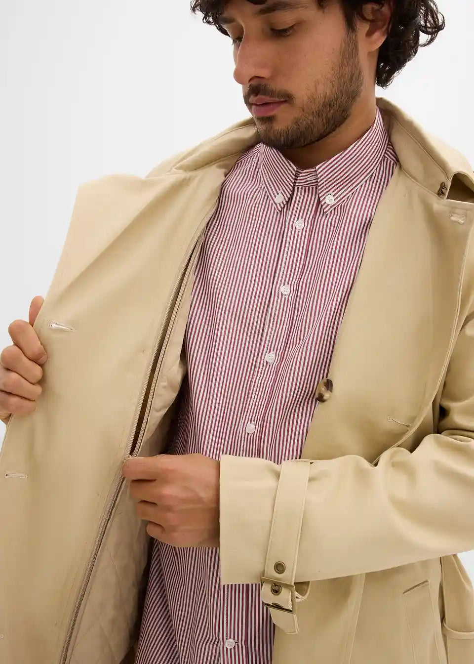 Der perfekte Übergangsmantel: mit einem speziell ausgerüsteten Baumwoll-Oberstoff ist der Trenchcoat wasserabweisend und hält leichten Herbstschauern stand, die Kapuze kann mit einem Reißverschluss abgetrennt werden und das leichte Steppfutter ist herausnehmbar. Ideal für die letzten Sonnentage und die ersten kalten Nächte.