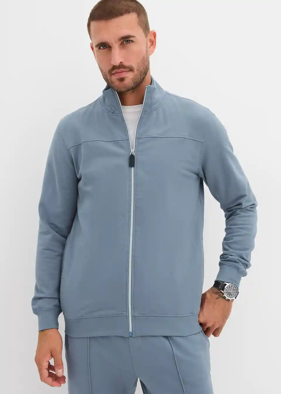 Schicke Sweatjacke im Regular Fit mit Stehkragen, markantem Zipper und praktischen Seitentaschen