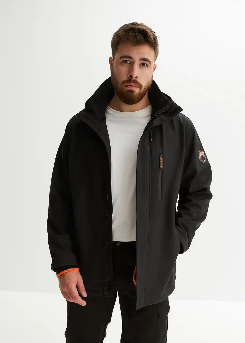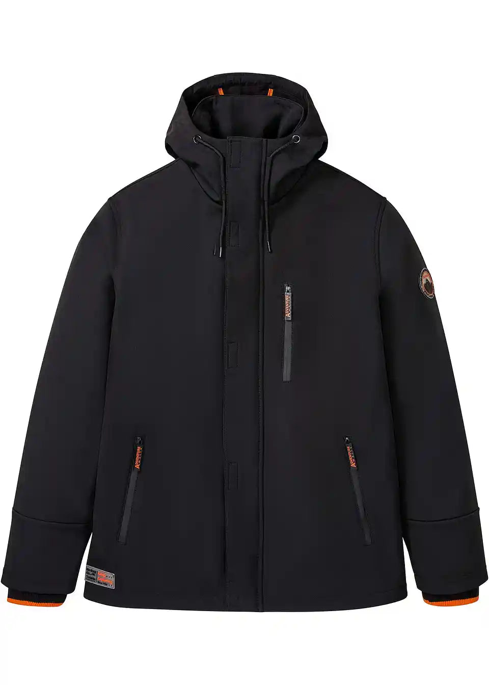 Moderne wasserabweisende und winddichte Softshelljacke, die zu dem atmungsaktiv ist