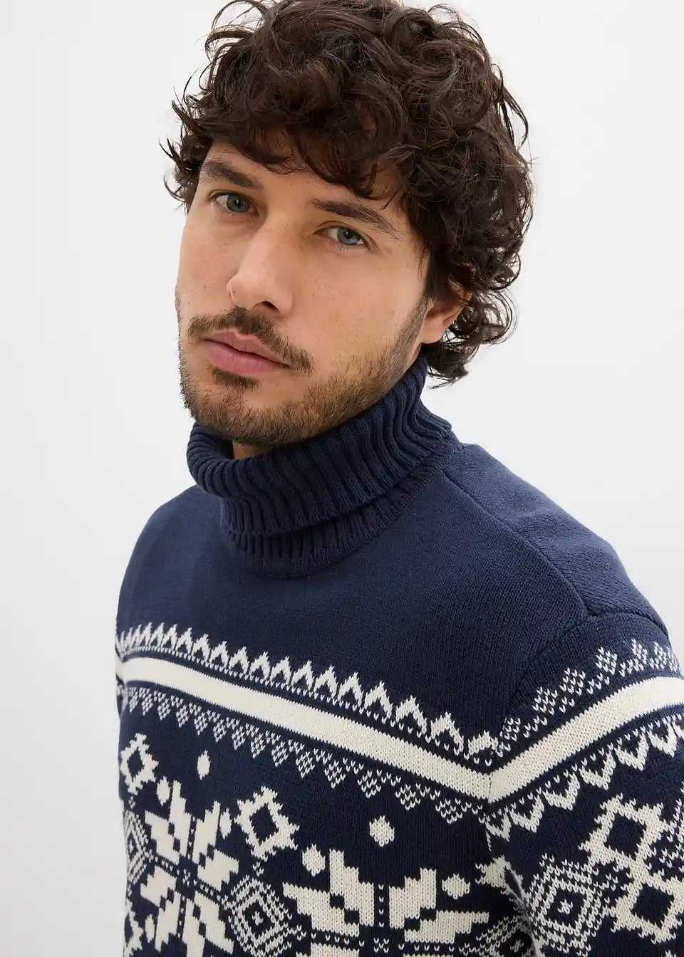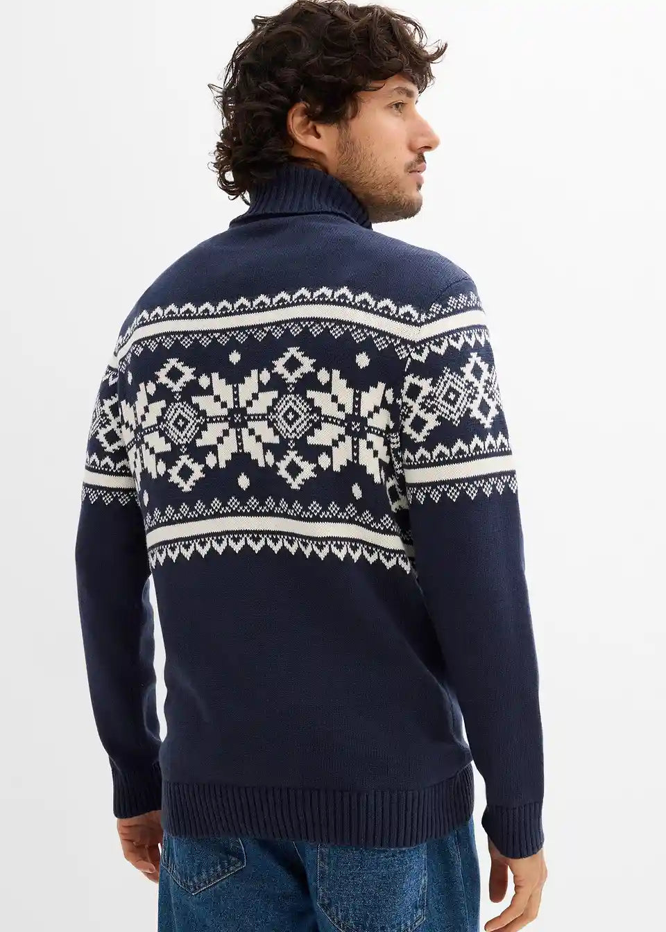 Norweger-Pullover mit Rollkragen aus reiner Baumwolle
