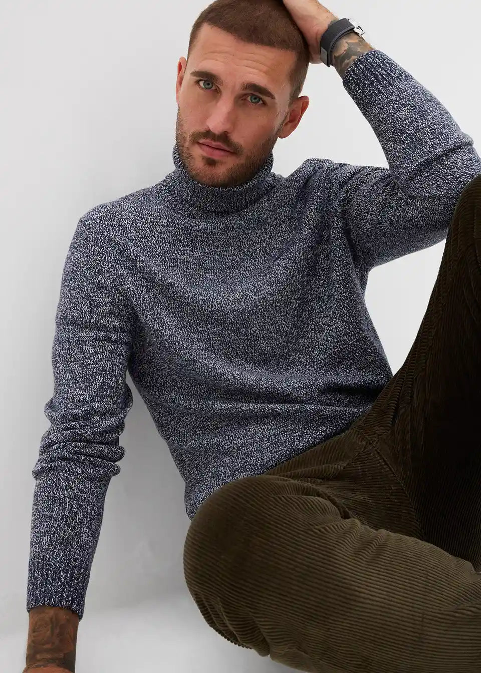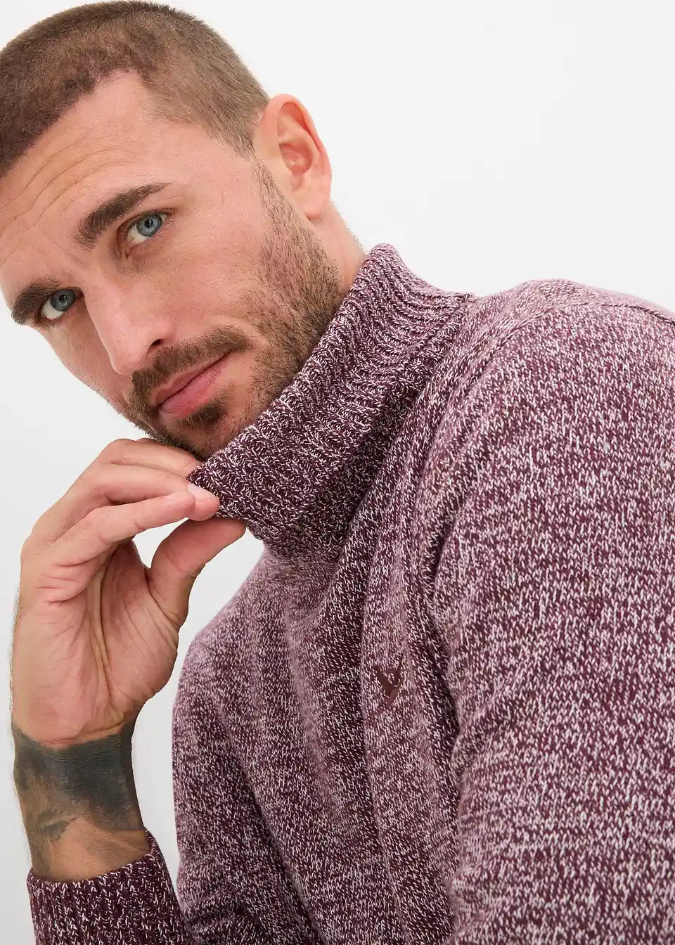 moderner Rollkragen-Pullover mit kleiner Stickerei