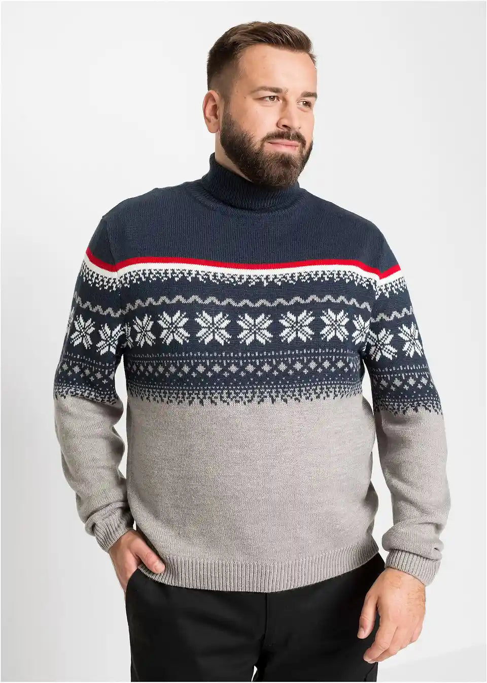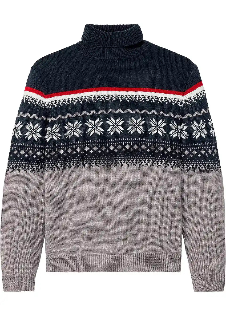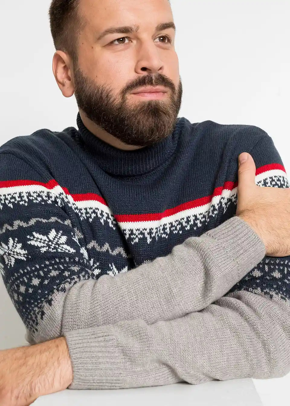 Modischer Herren Rollkragenpullover mit Norwegermuster