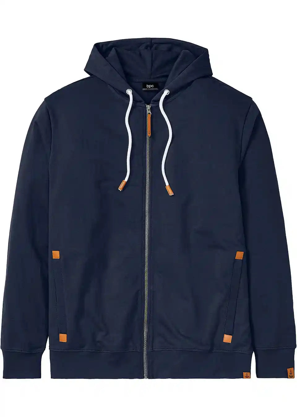 Schöne Kapuzen-Sweatjacke mit Taschen und Lederimitat-Details, maschinenwaschbar