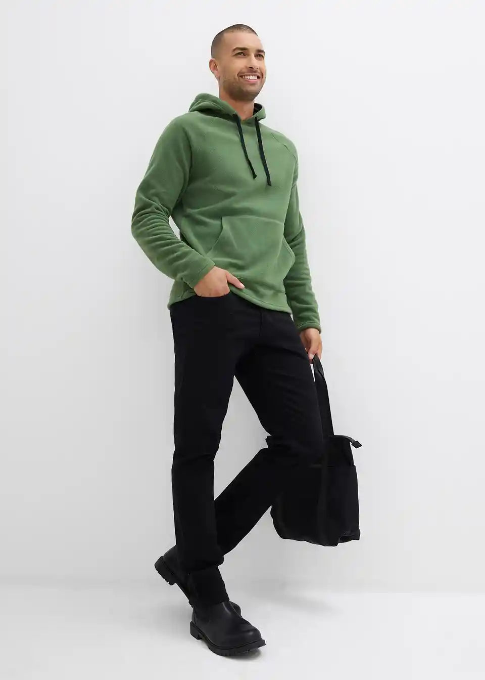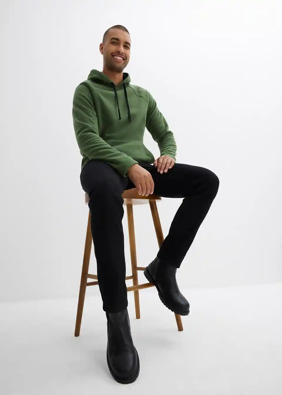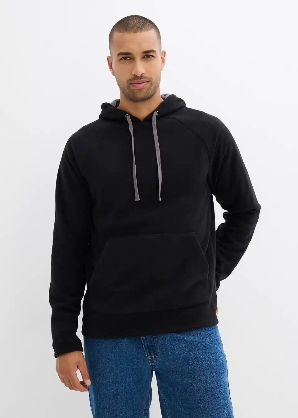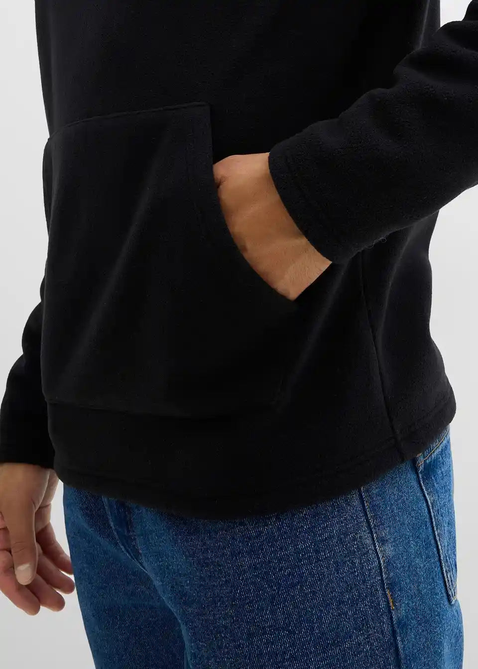 moderner Basic Fleece-Pullover mit kontrastfarbigen Bindebändern