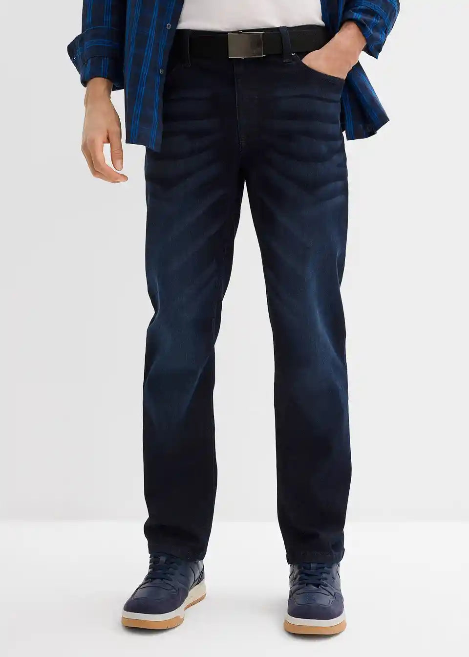 Regular Fit Stretch-Jeans mit Gürtel, Straight