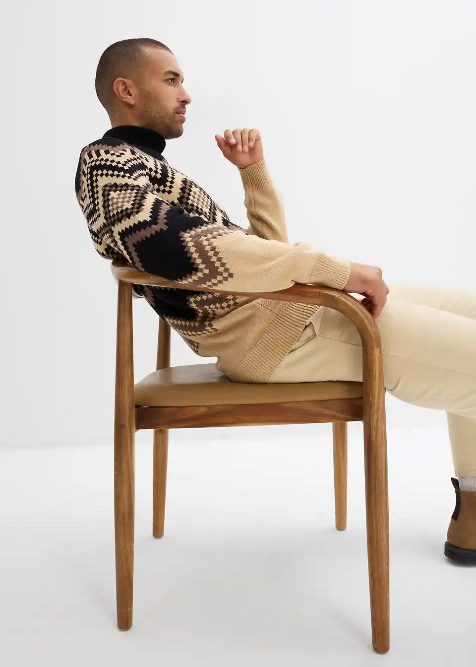 Schöner gemusterter Rollkragenpullover mit Rippbündchen an den Ärmeln und am Saum