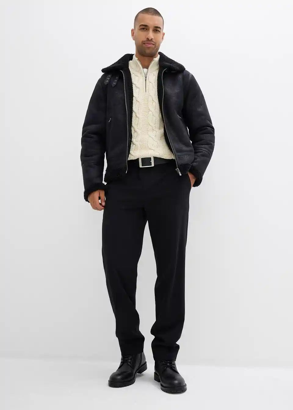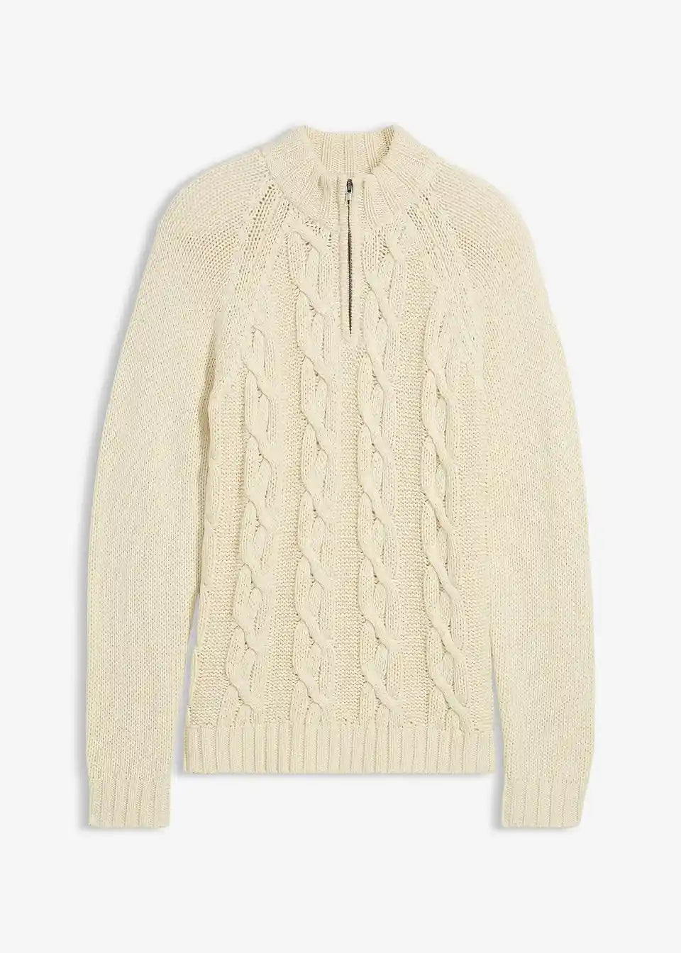 Angesagter Grobstrick Troyer mit Reißverschluss und Rippbündchen