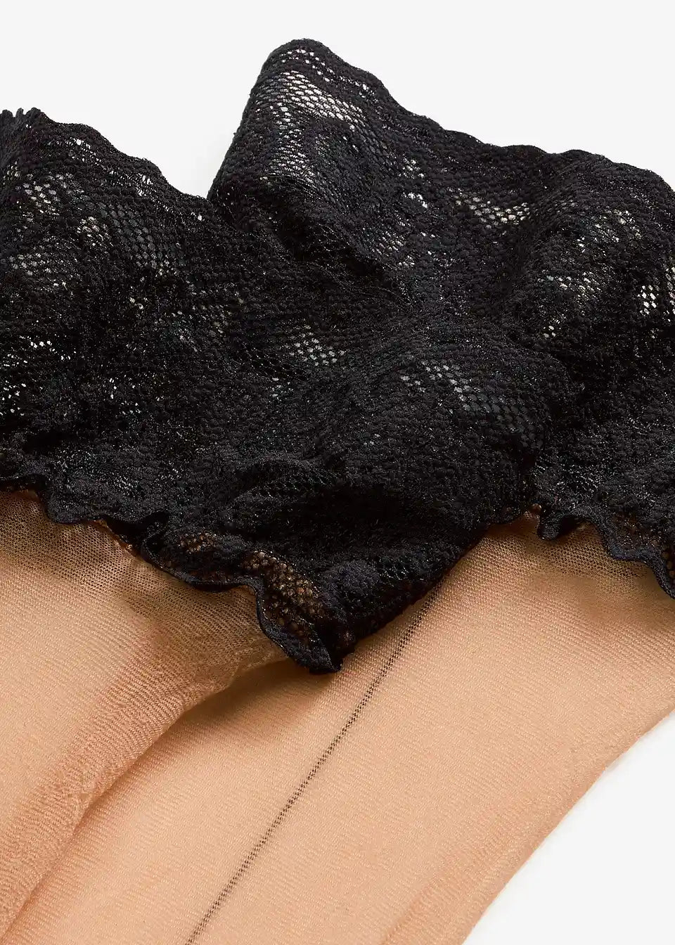 Halterlose Strümpfe mit hübscher Spitze und verführerischen Zierstreifen hinten