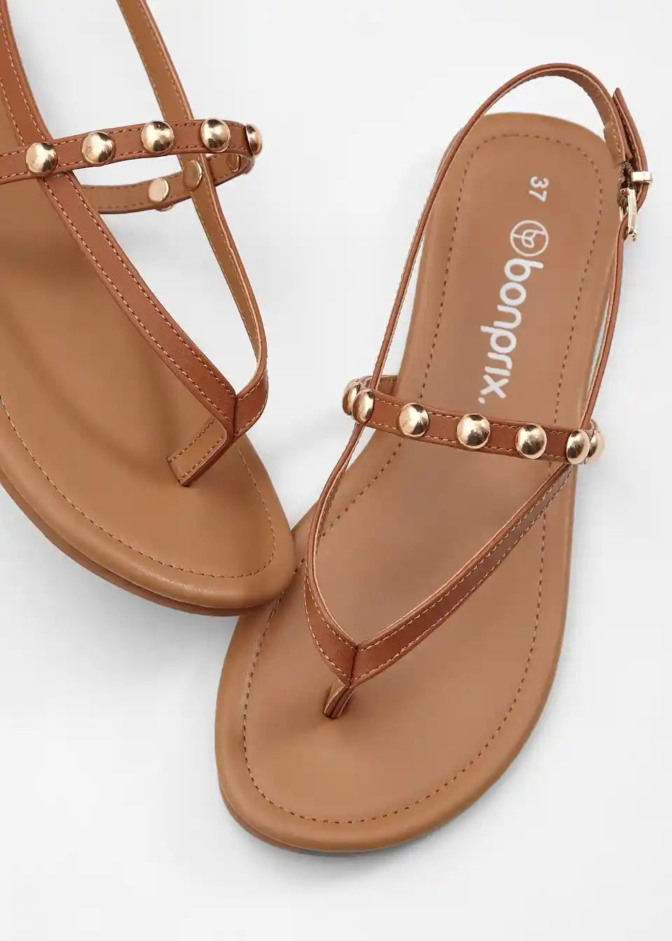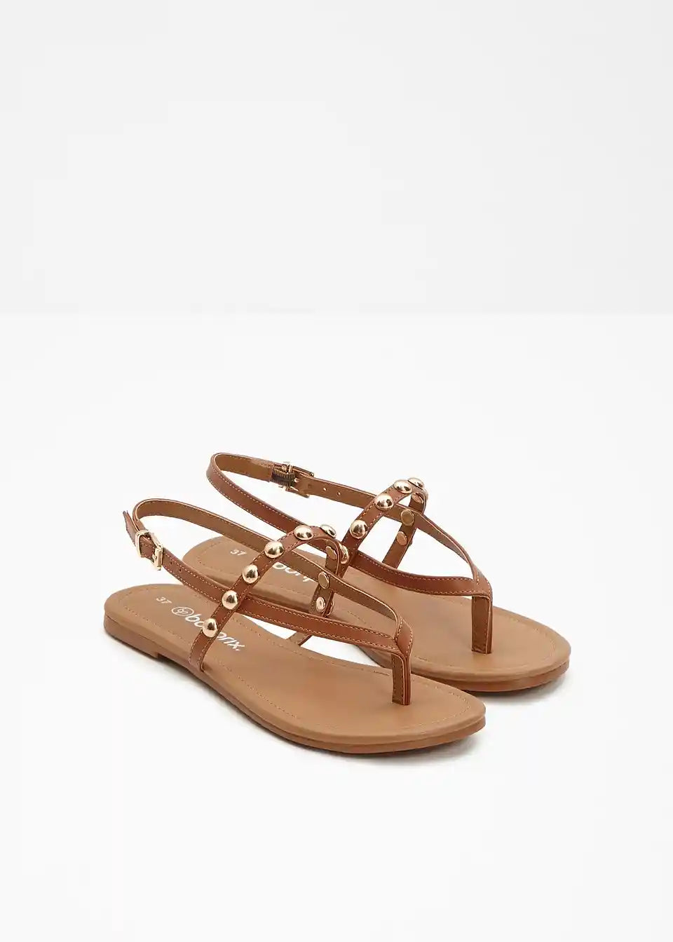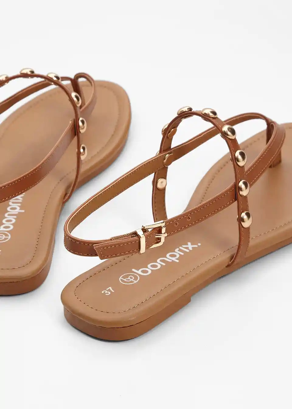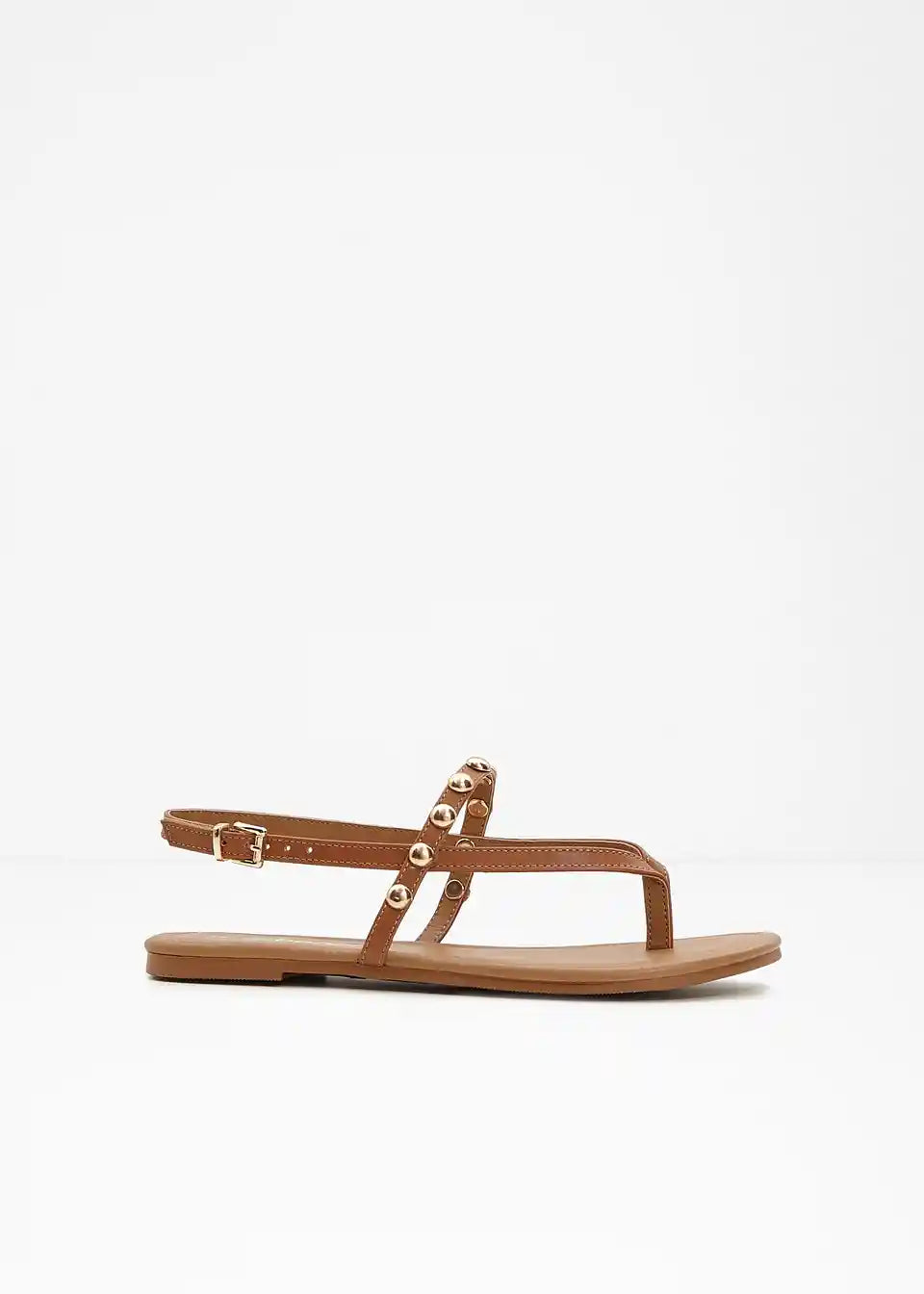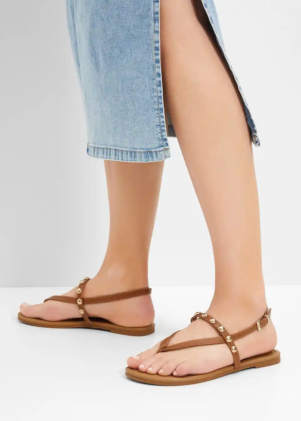 Sommerliche Zehensteg Sandale mit großen Nieten