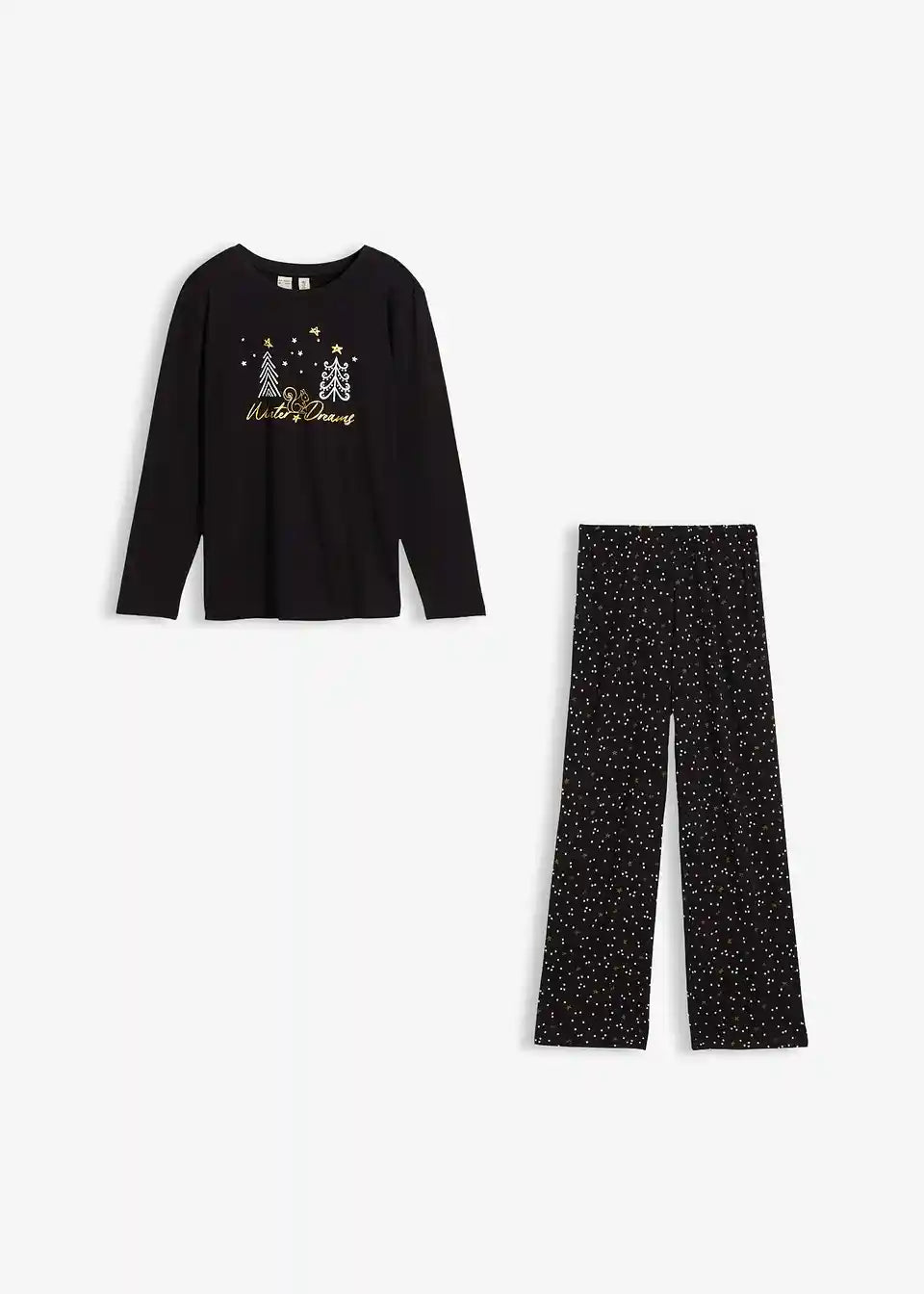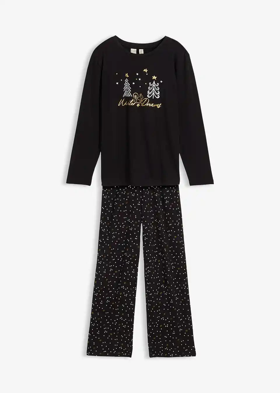 Gemütlicher Pyjama aus Baumwolle mit goldenem Folien-Druck im 2 tlg. Set.