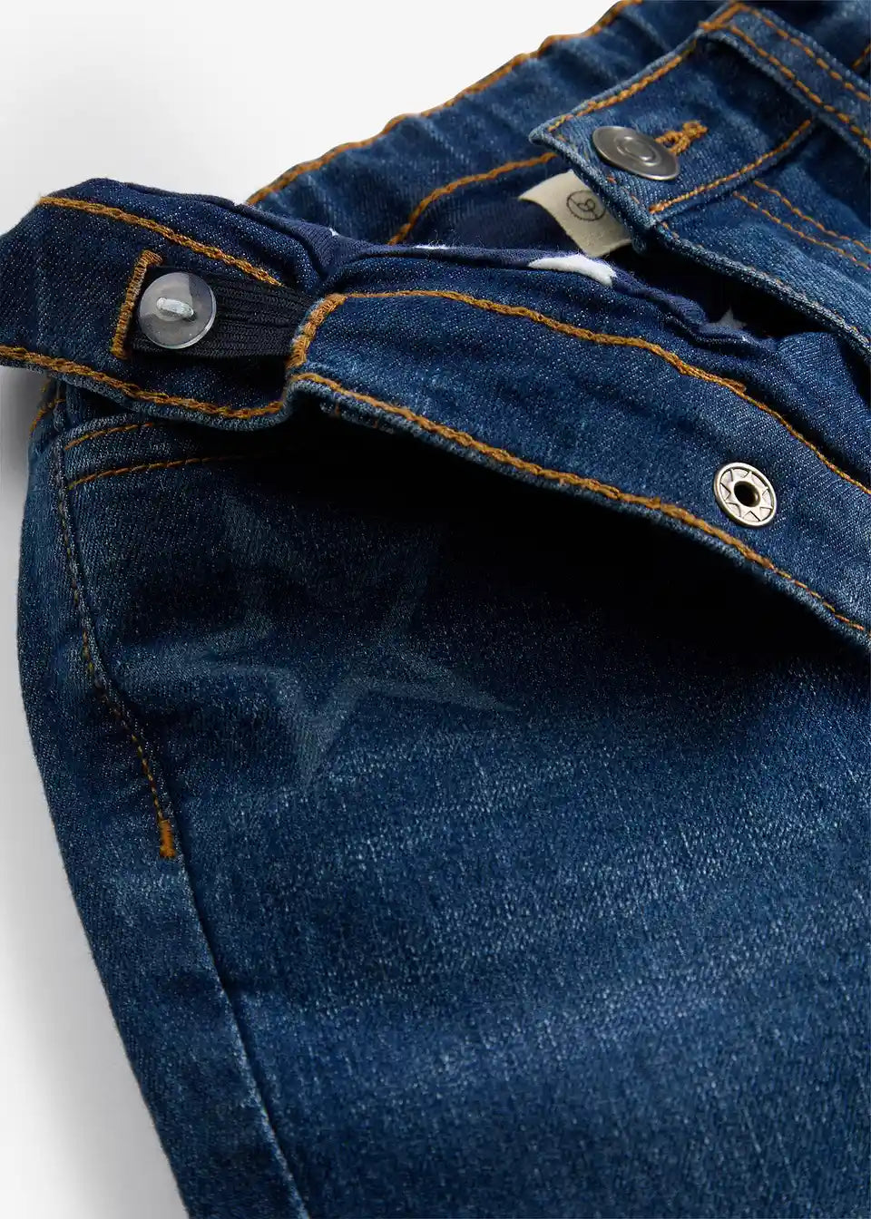 Diese stylische Thermo-Bootcut-Jeans bietet eine reguläre Passform mit mittelhohem Bund und langen Beinen. Der schmale Oberschenkel und der Bootcut-Schnitt sorgen für einen modischen Look. Mit fünf praktischen Taschen im 5-Pocket-Stil und einem verstellbaren elastischen Bund bietet sie sowohl Funktionalität als auch Komfort. Die Jeans sind vollständig gefüttert und verfügen über einen Reißverschluss und einen Druckknopfverschluss in antikem Silber.Zusätzlich zeichnet sich die Jeans durch einen coolen Laser-Effekt mit Sternen und einen Stone-Washed-Look aus. Ideal für kühle Tage, kombiniert sie Stil und Wärme und ist ein Must-have für jede junge Garderobe!