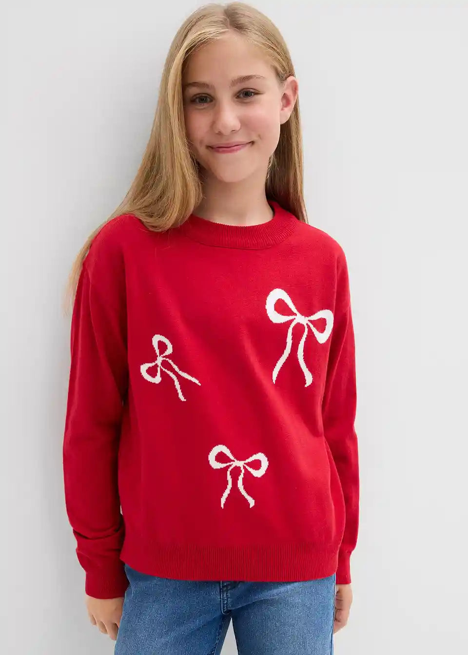 Feinstrickpullover mit Schleifendetails für Mädchen