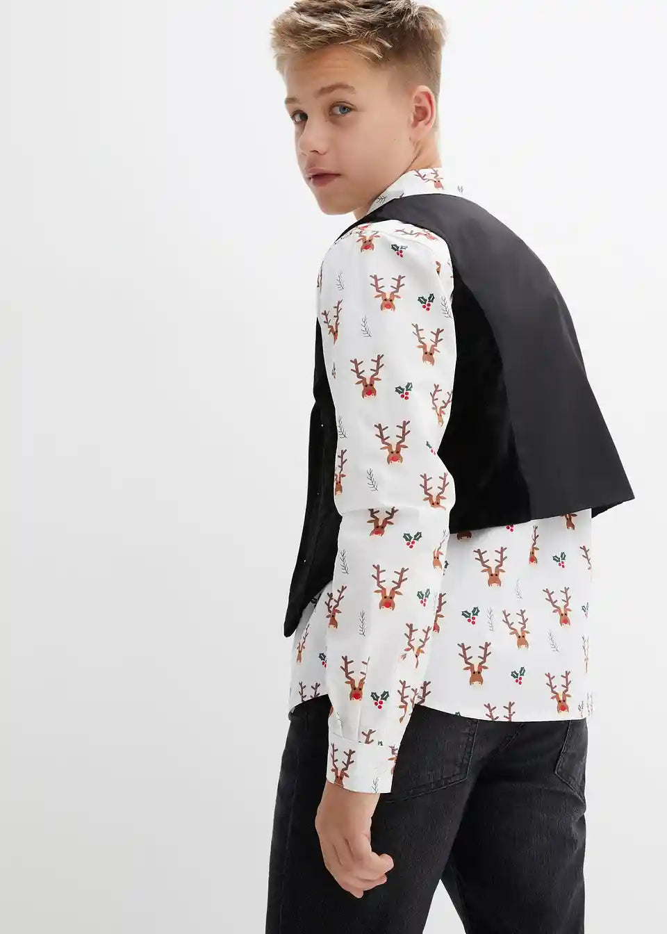 Klassisches Set aus Jungen Langarmhemd mit passender Samt Weste
