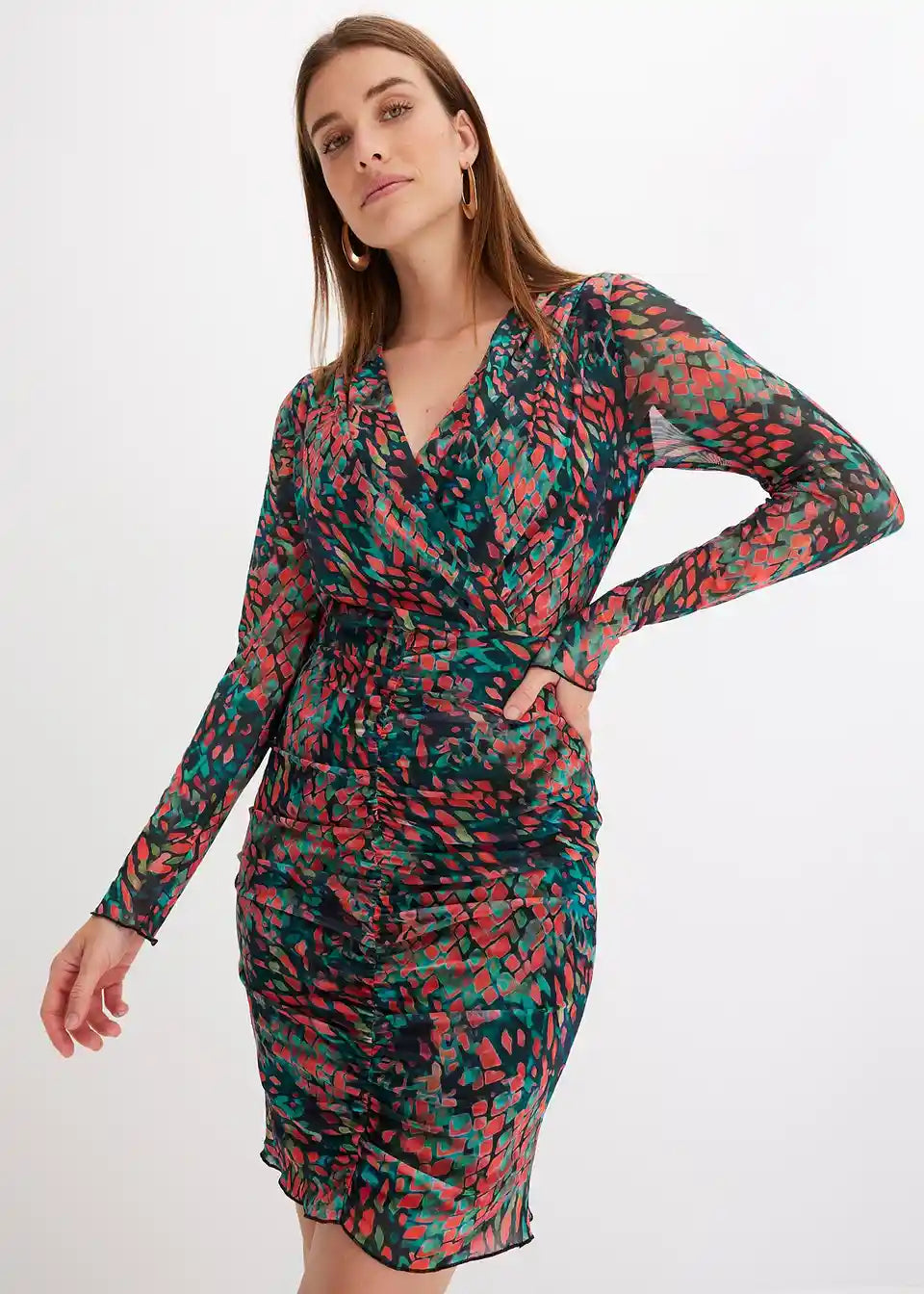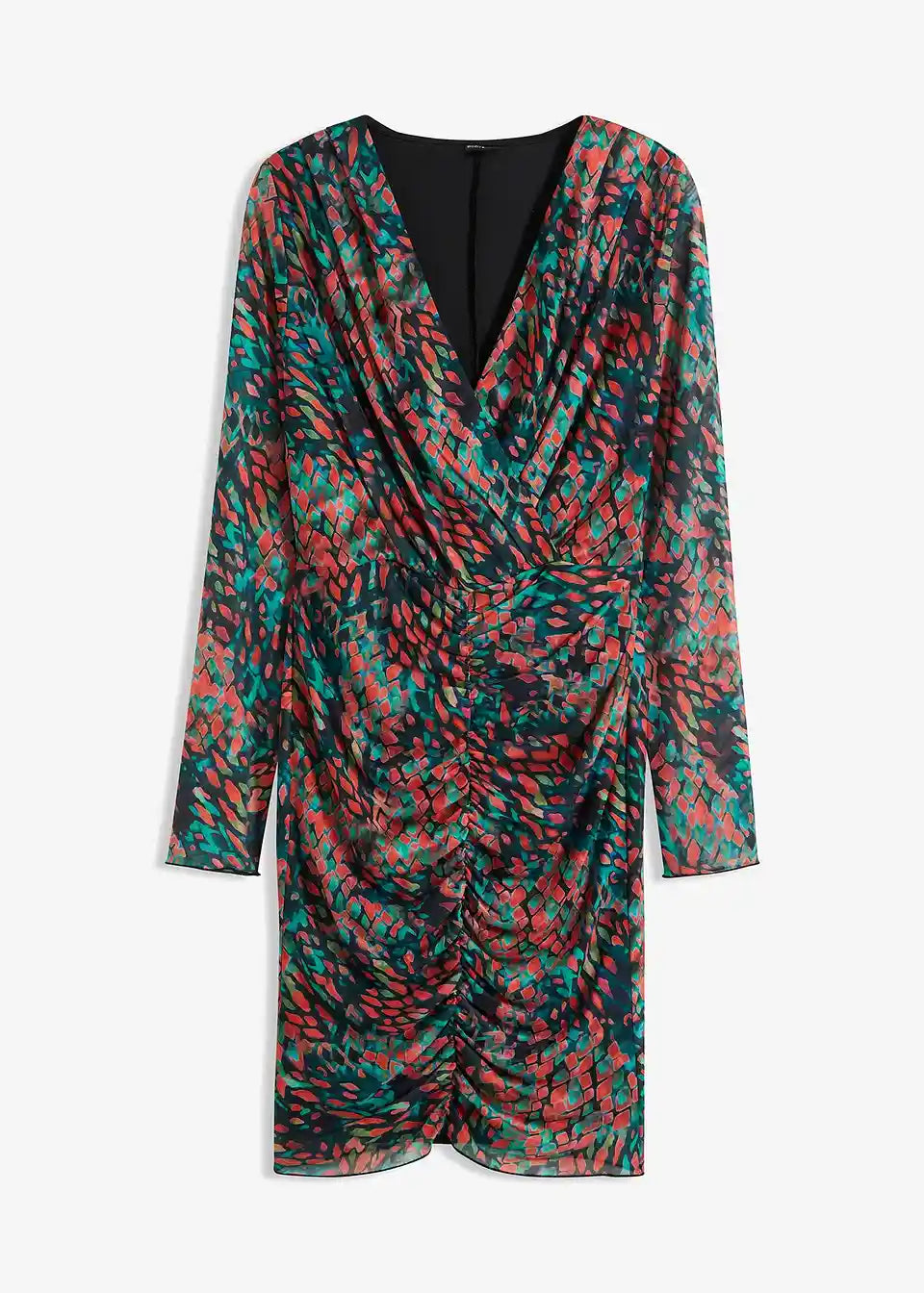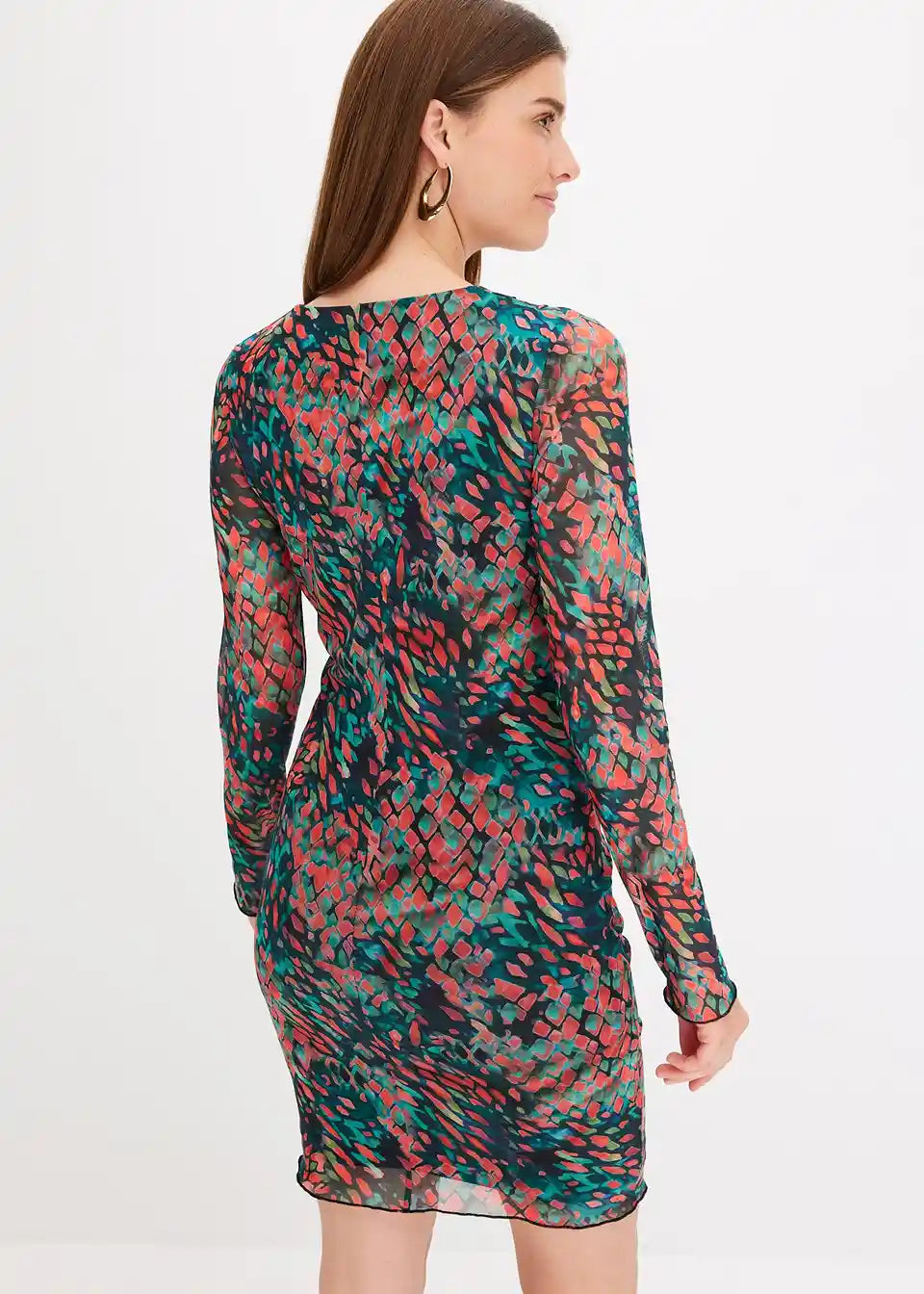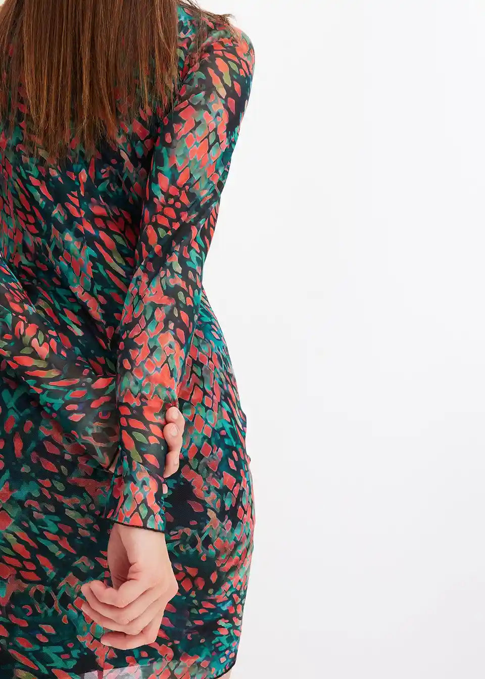 bedrucktes Mesh-Kleid mit V-Ausschnitt