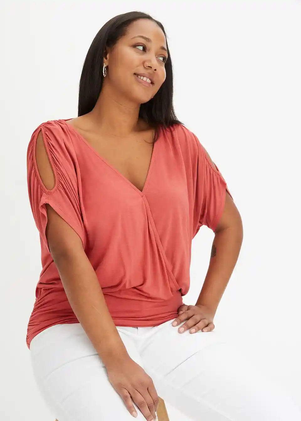 modisches Shirt mit V-Ausschnitt und Bündchen am Saum