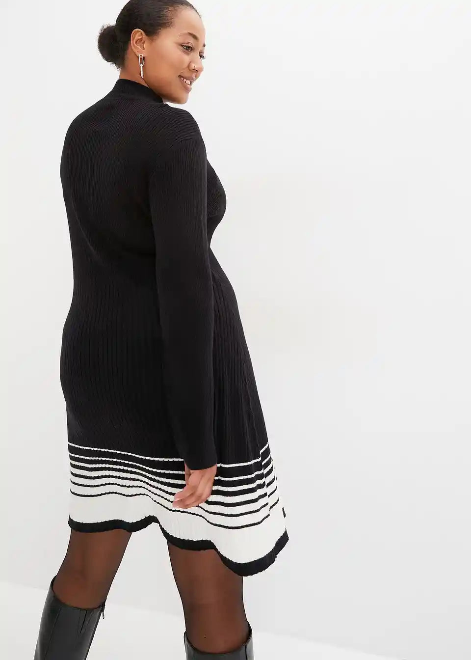 Ausgestelltes Strickkleid mit Streifen-Details