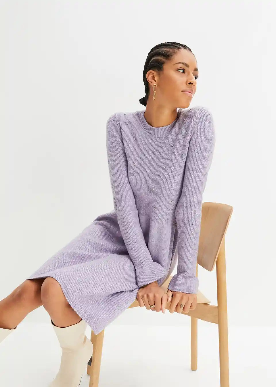 Modernes Strickkleid mit besonderen Ärmeln und Strass-Elementen