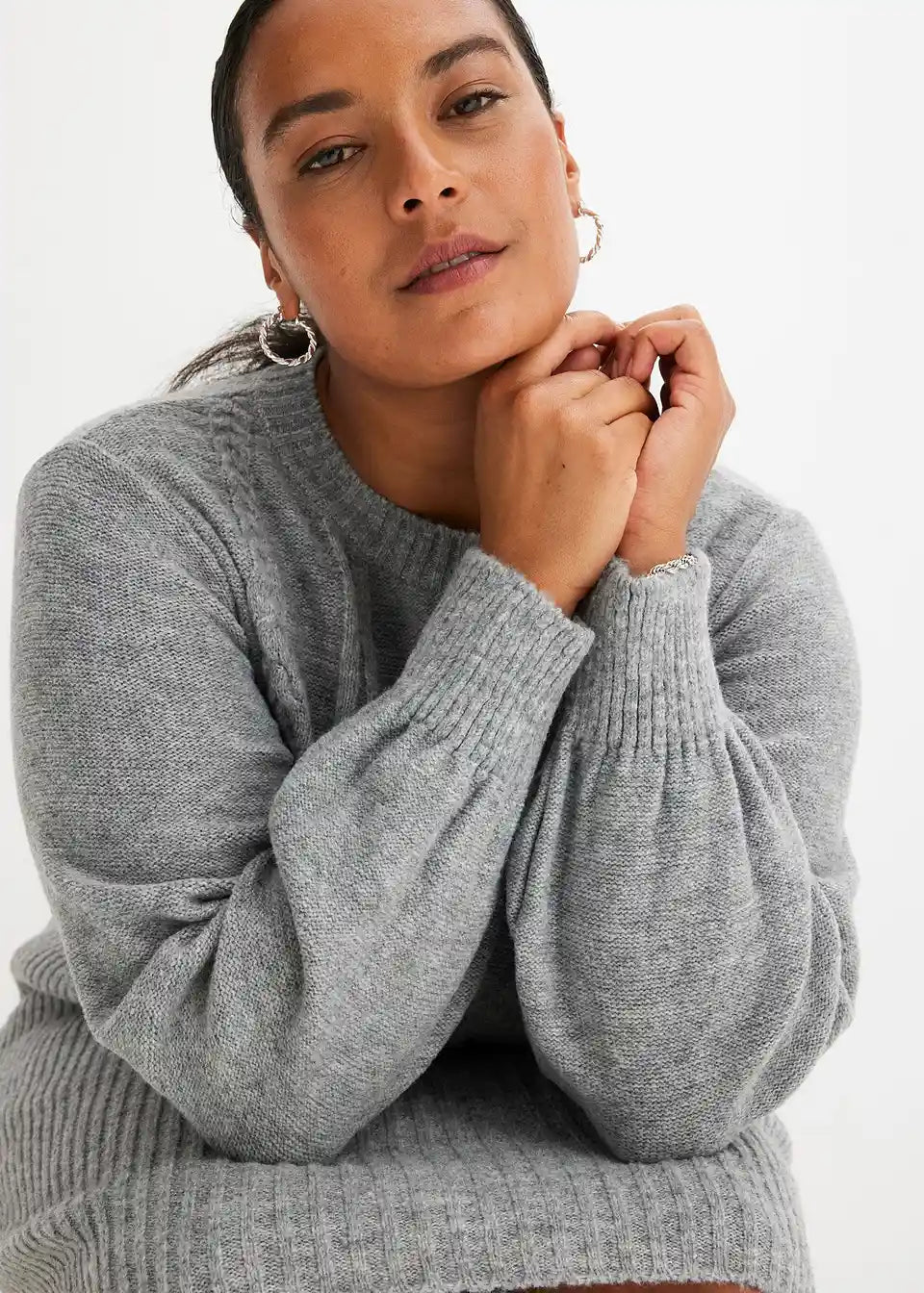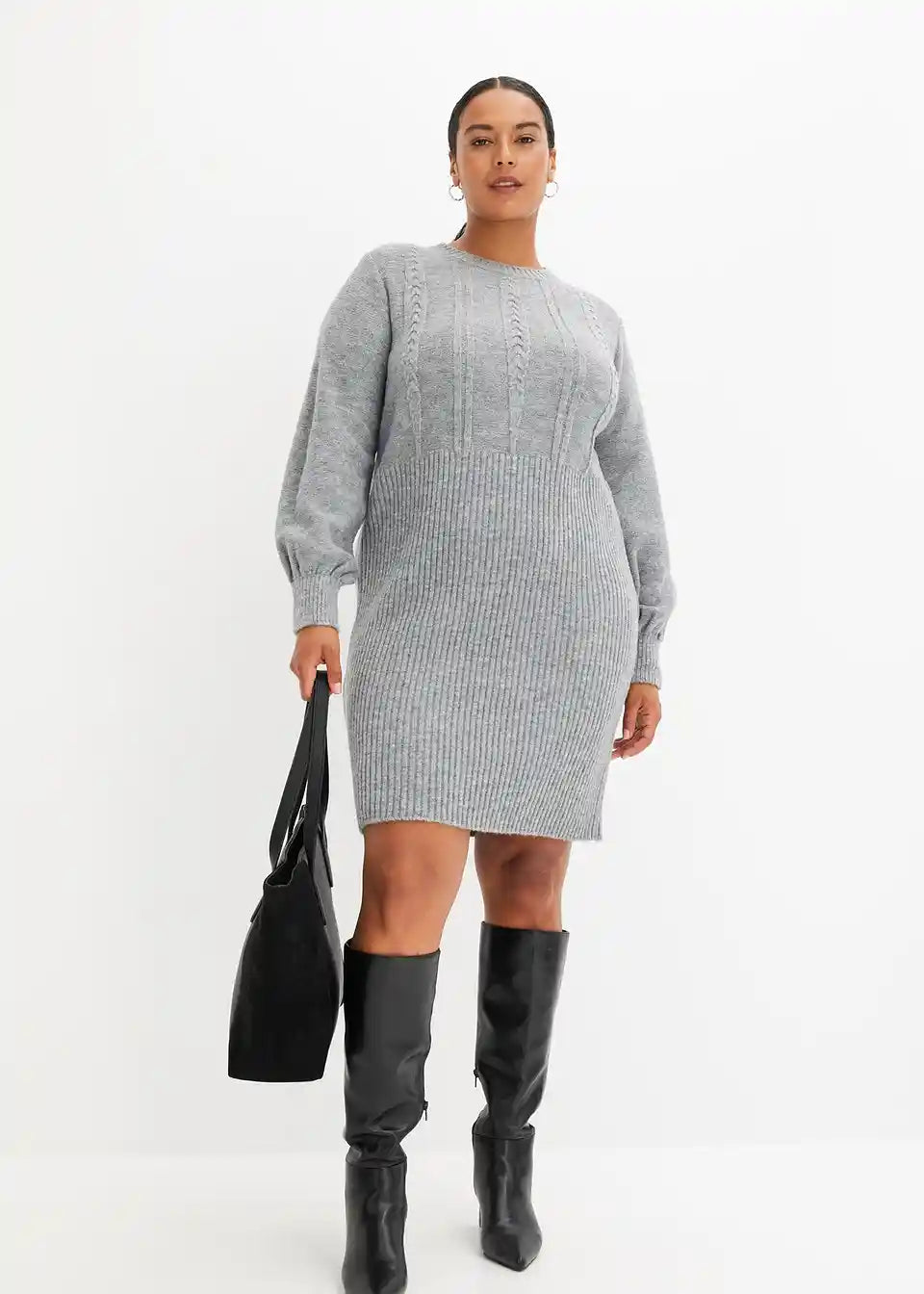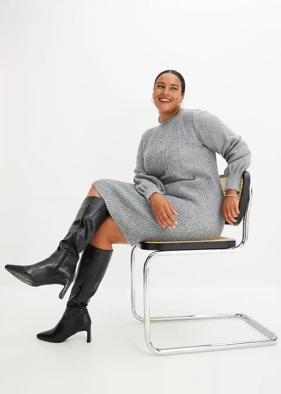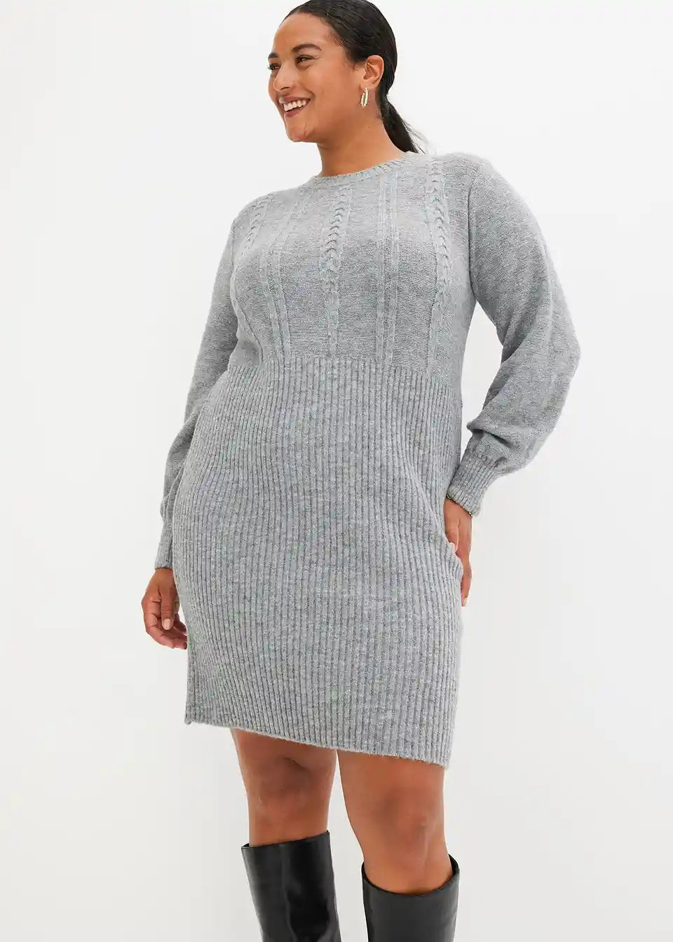 feminines Strickkleid mit Zopfmuster