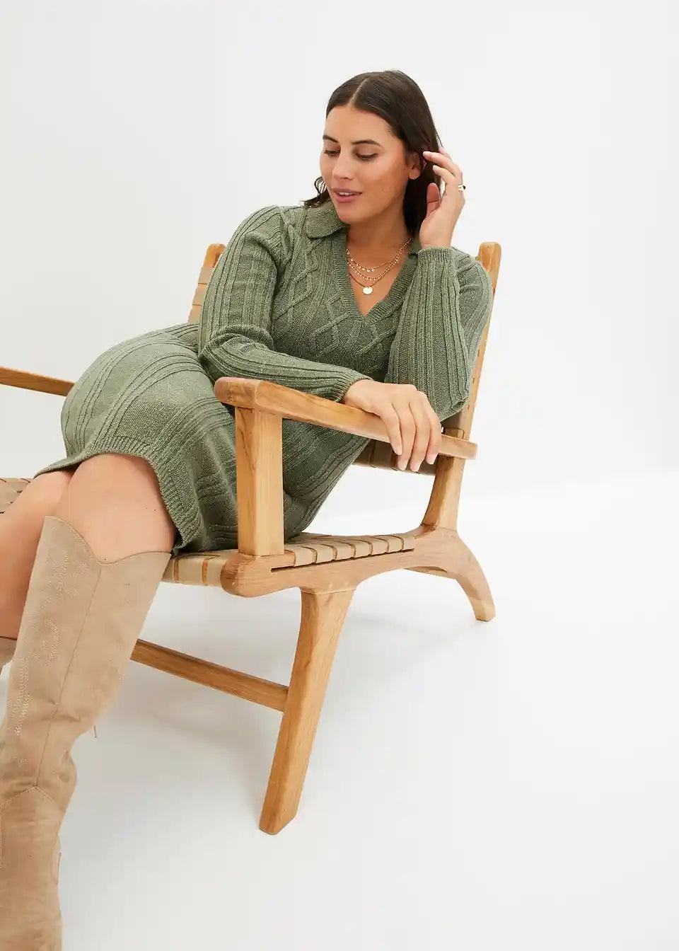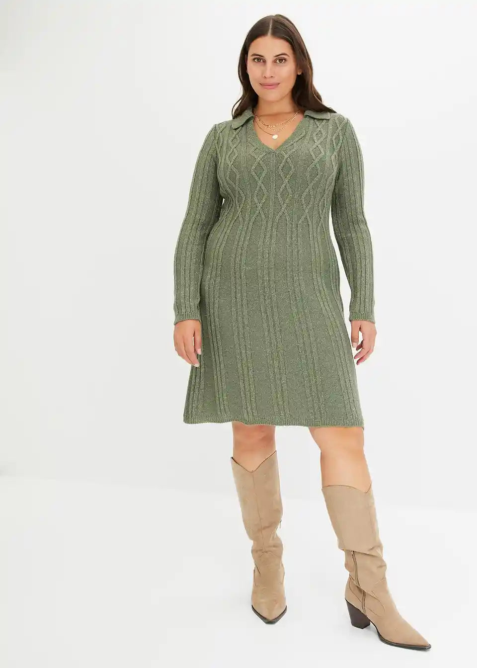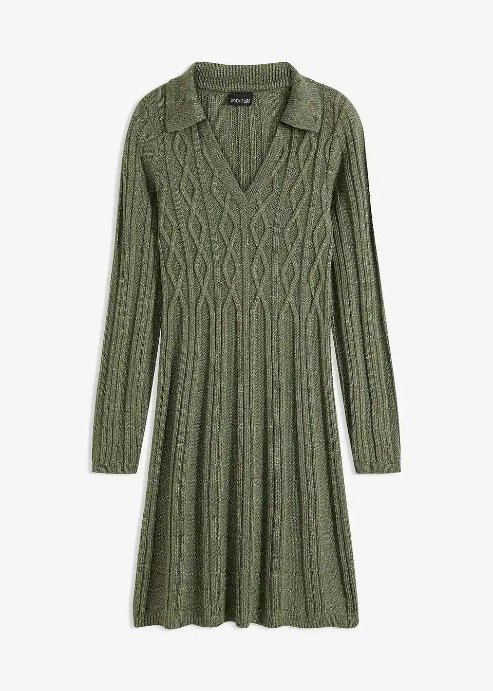 modisches Strickkleid mit Glitzereffekt und Zopfmuster