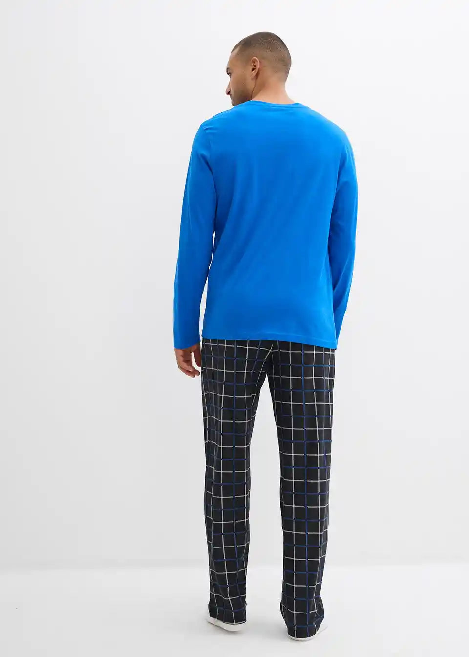 Gemütlicher Herren Pyjama mit Knopfleiste am Ausschnitt und einem Hosenbündchen mit Bindeband.