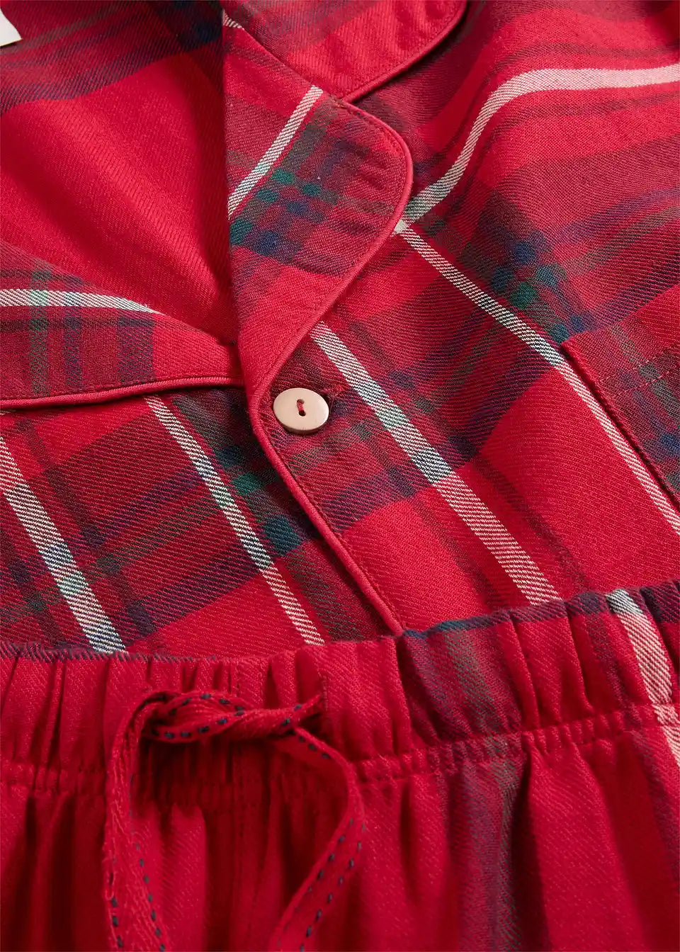 Gewebter Herren-Flanell Pyjama mit Geschenkbeutel. Mit Eingrifftaschen an der Hose. Das Oberteil hat eine durchgehende Knopfleiste.