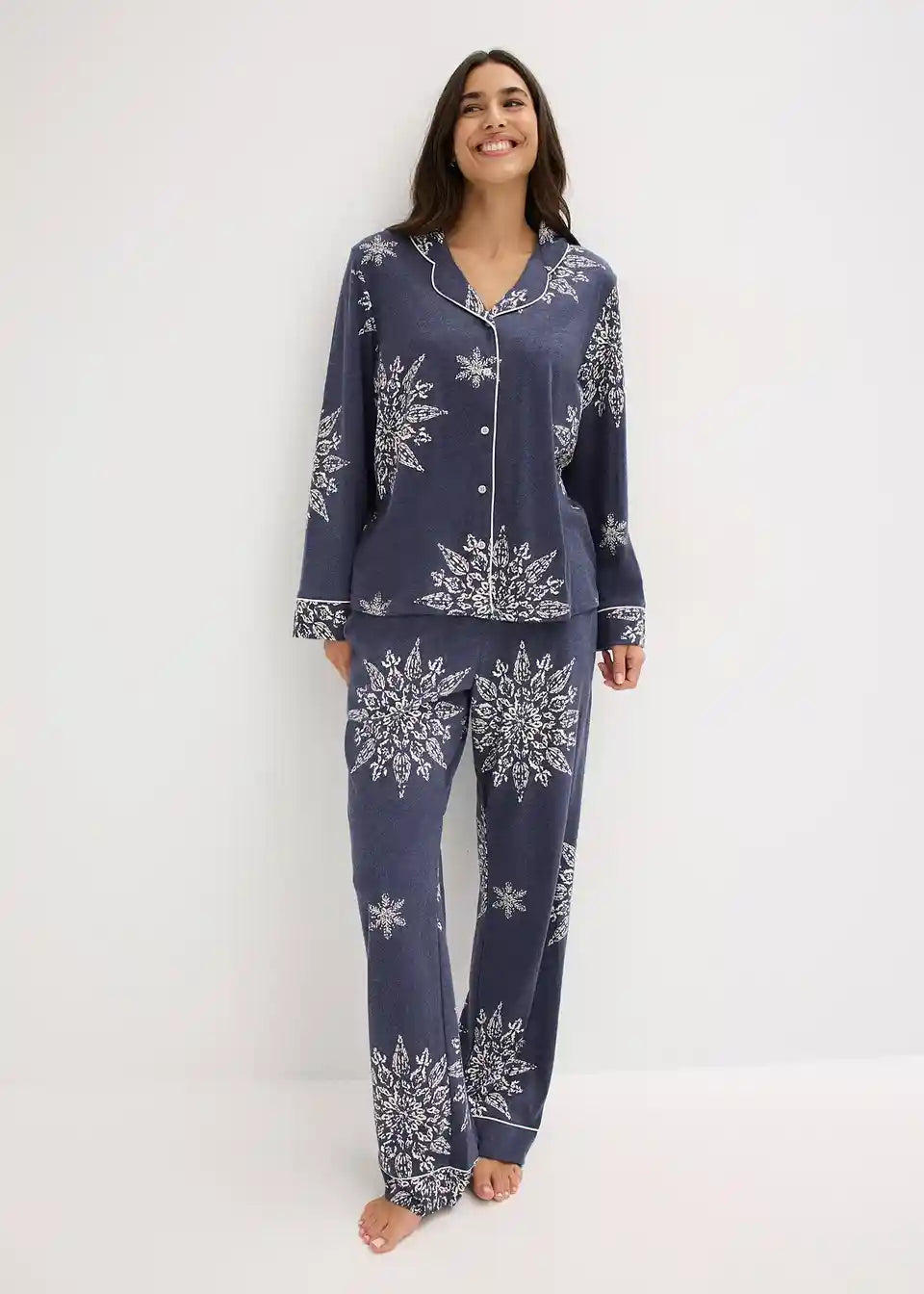 Gemütlicher Pyjama mit Reverskragen und Knopfleiste sowie einer Hose mit Eingriffstaschen an der Seitennaht