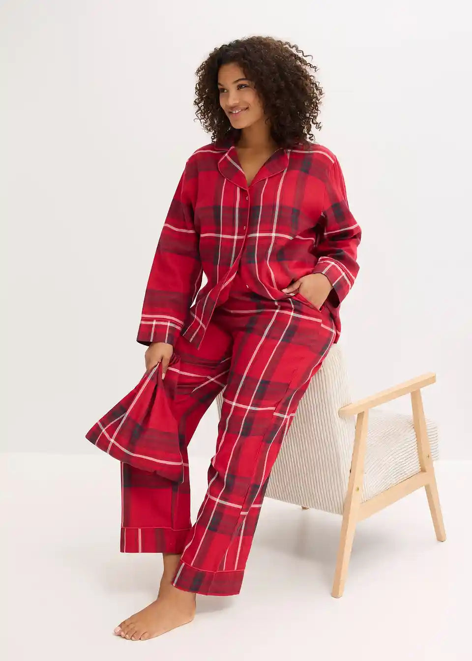 Flanell Pyjama aus weicher Baumwolle mit Geschenktasche