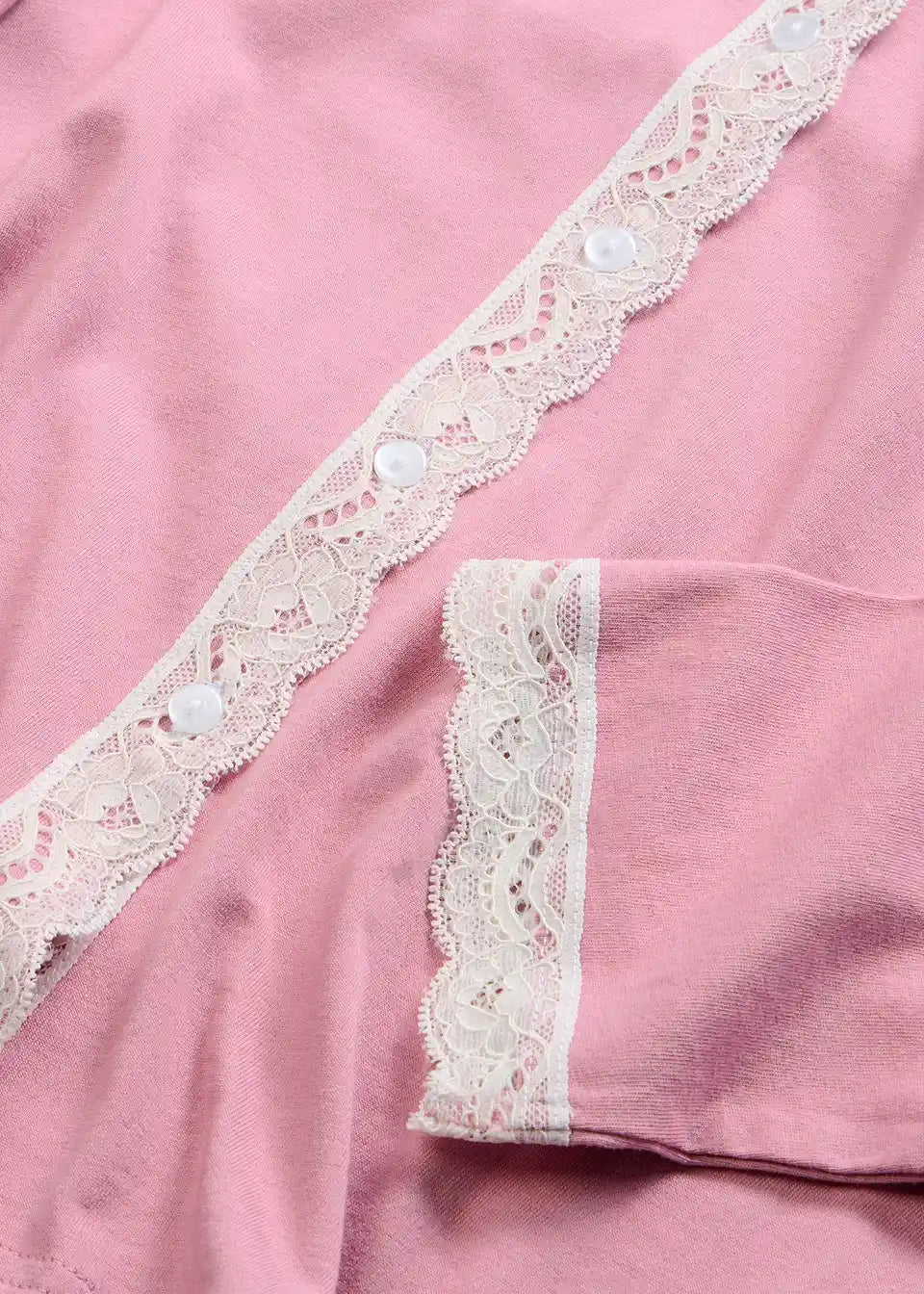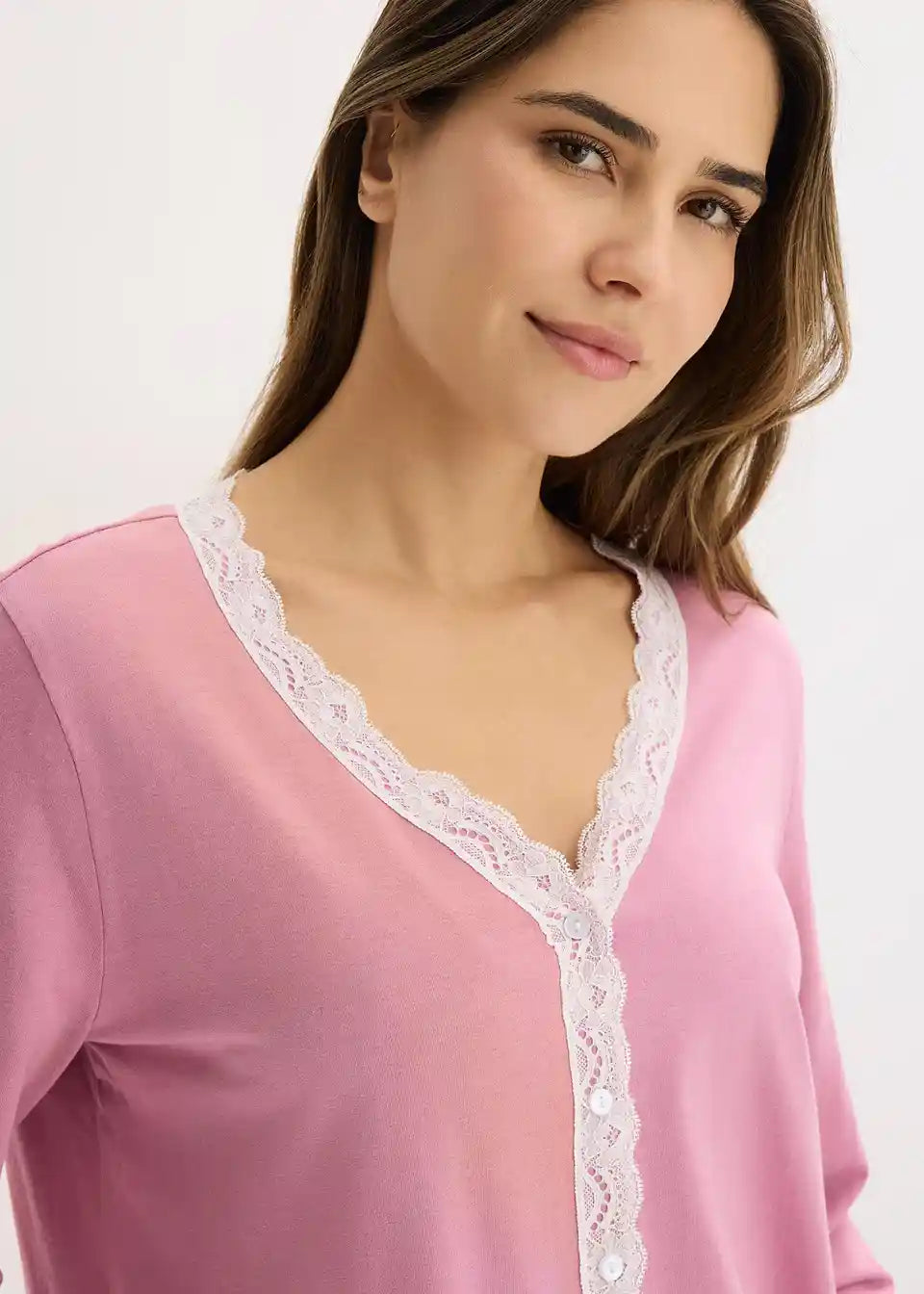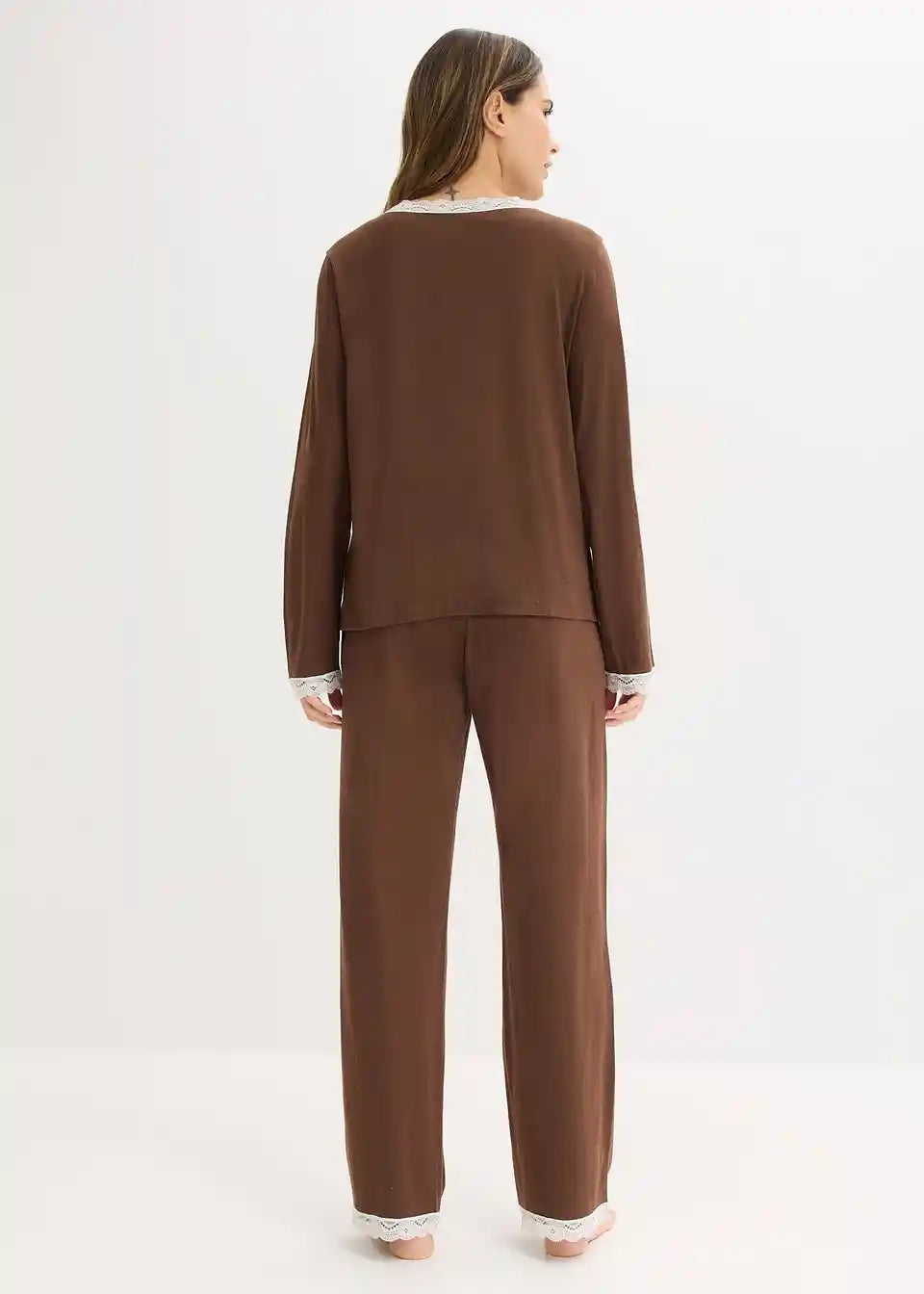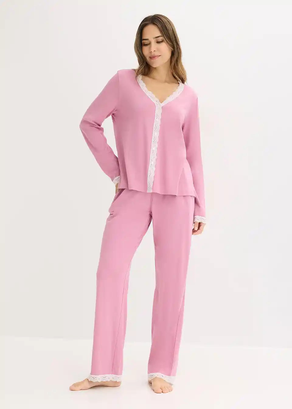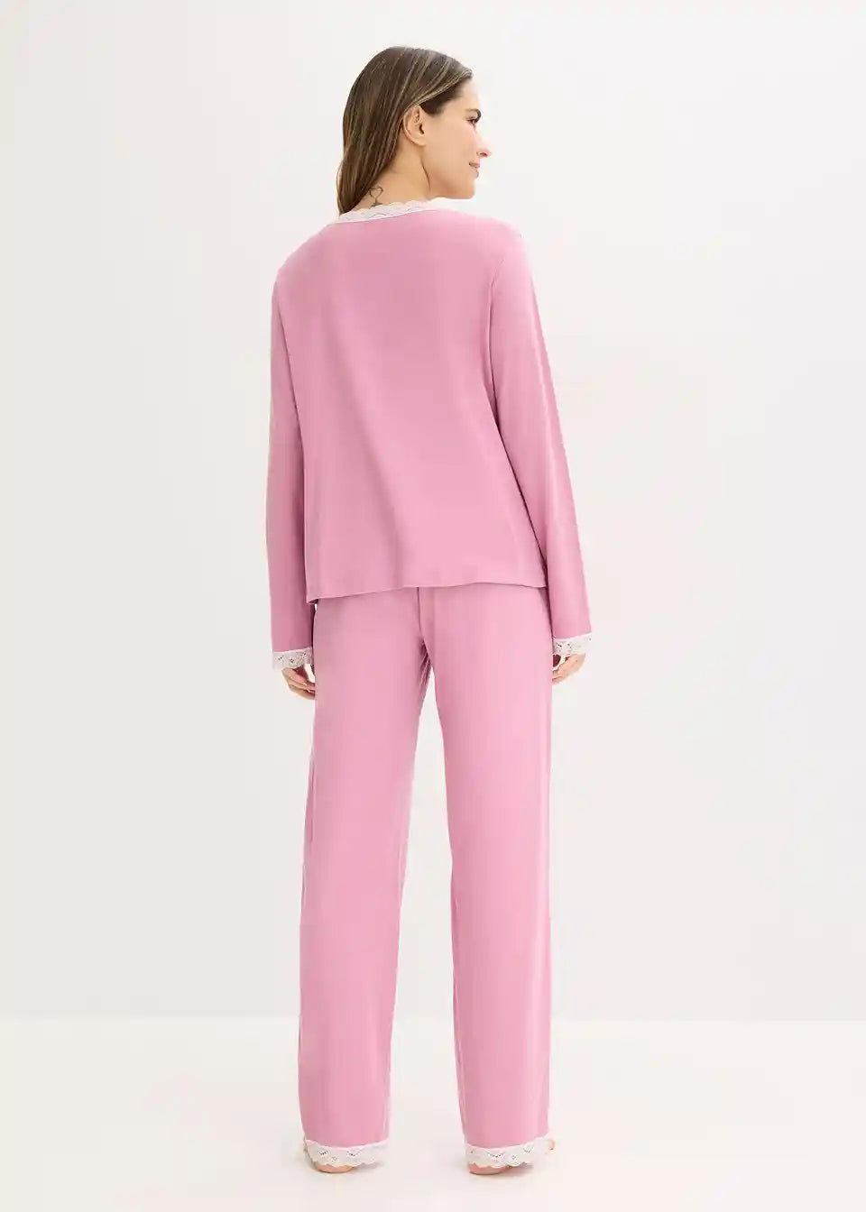 Femininer Pyjama mit besonders schönem Spitzenbesatz sowie Eingriffstaschen an der Hose