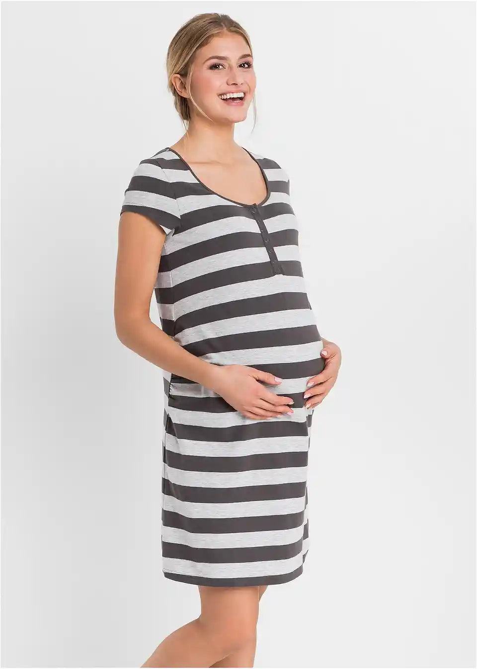 Das aparte Schwangerschaftsnachthemd der Marke Nice Size ist praktische Nachtwäsche mit dem Gewissen Etwas. Die weiche Baumwollqualität und der figurumspielende Schnitt sorgen für hohen Tragekomfort. Dank der Knopfleiste ist das Nachthemd auch für das spätere Stillen sehr komfortabel.