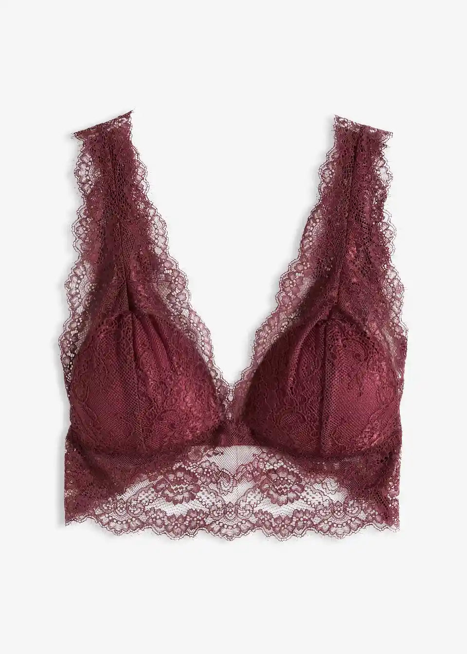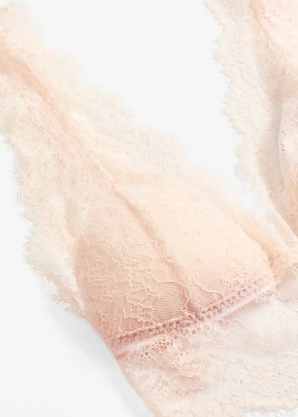 Bralette aus zarter Spitze und mit verzierten Trägern.