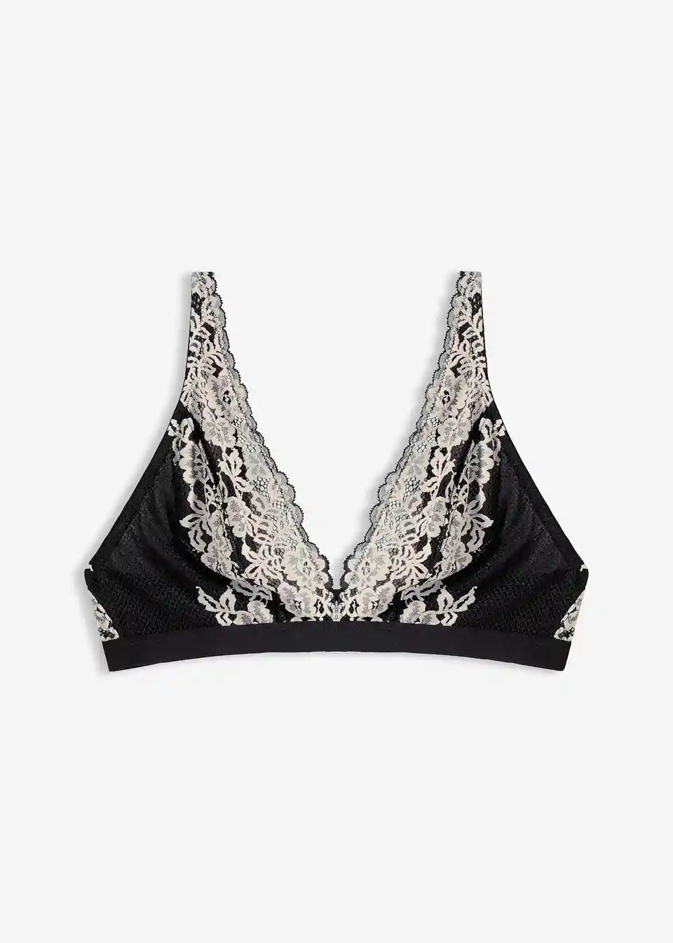 Bralette aus zweifarbiger Spitze mit recyceltem Polyamid.
