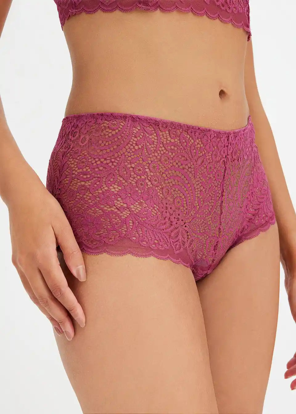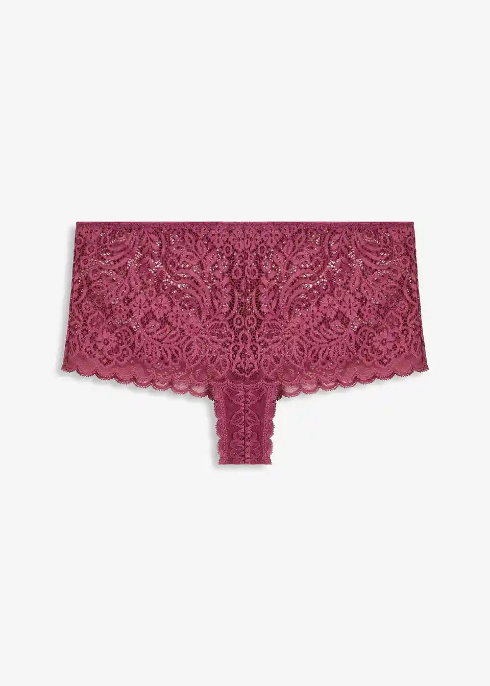 Ein Unterteil komplett aus Spitze sollte im Wäscheschrank nicht fehlen. Dieser Slip wirkt selbst zum schlichten BH einfach nur reizend und elegant. Der Zwickel ist aus Baumwolle und sorgt für ein angenehmes Gefühl beim Tragen.